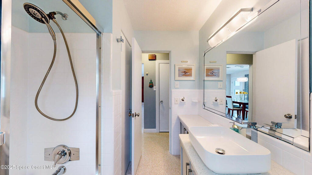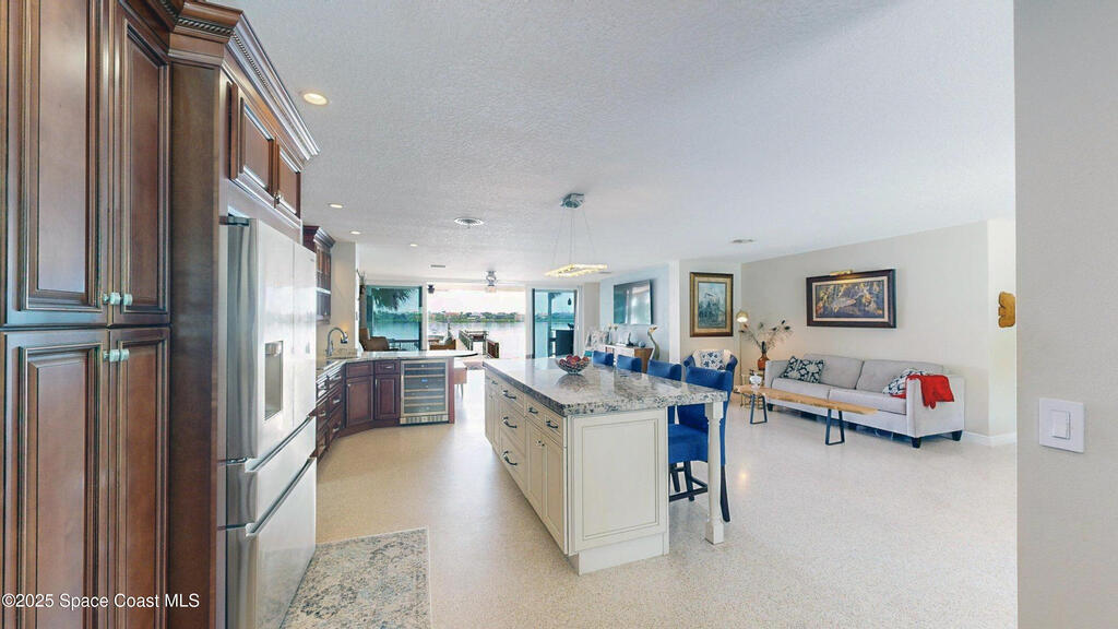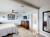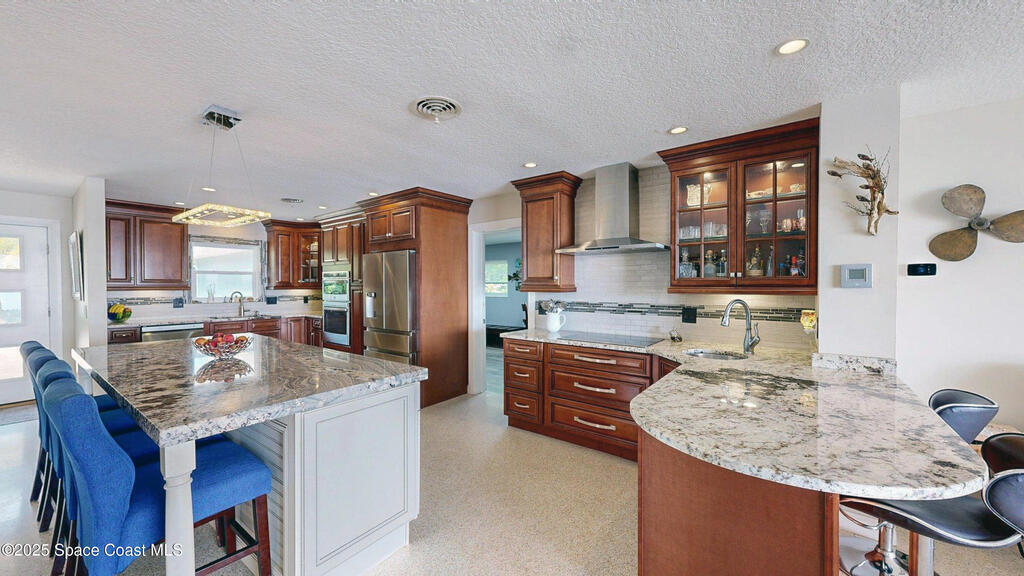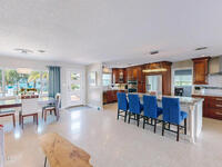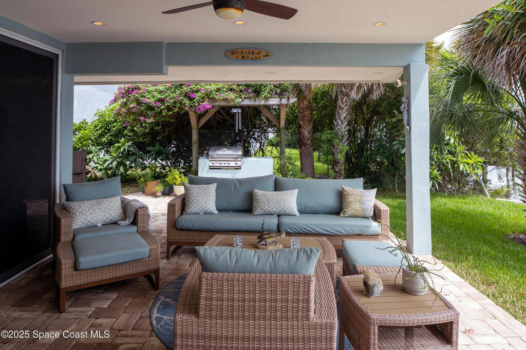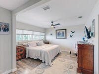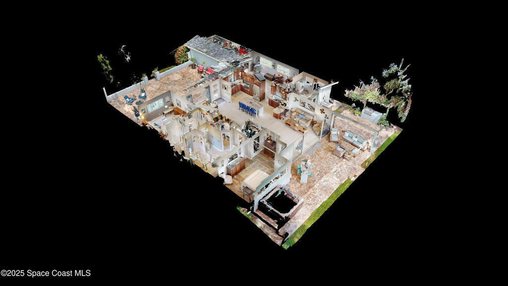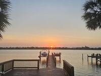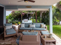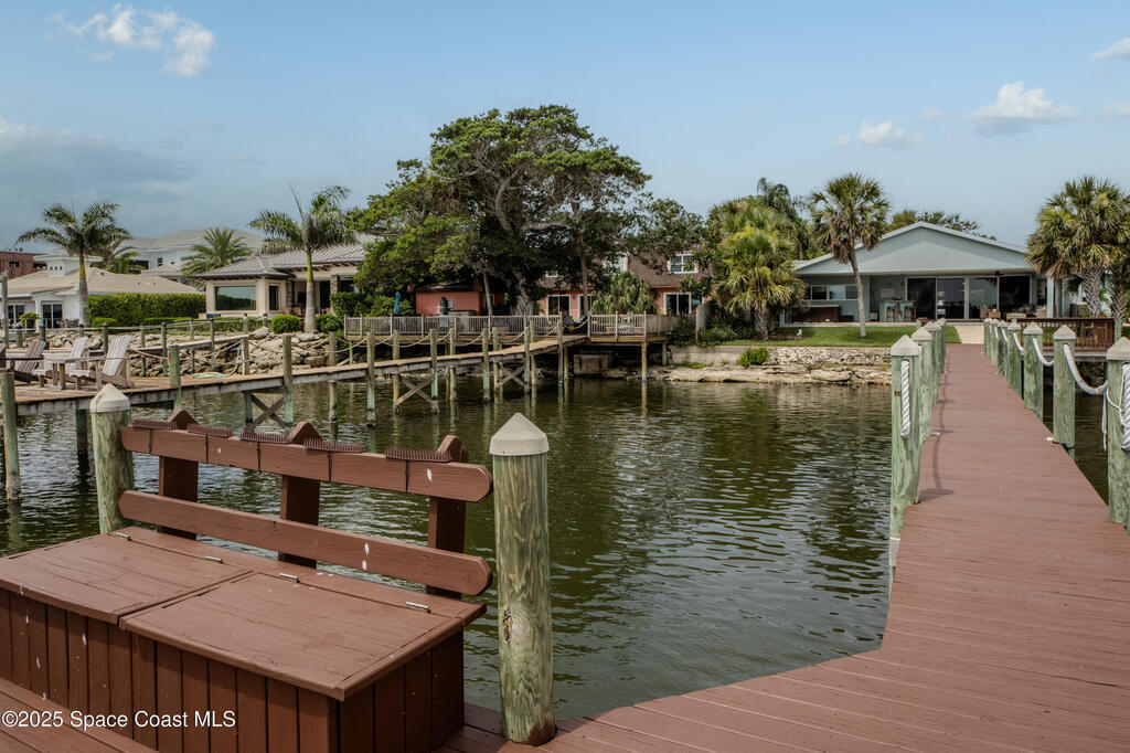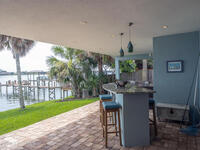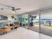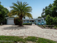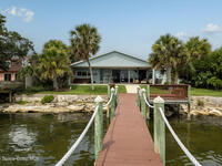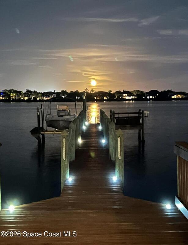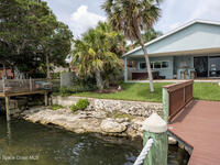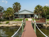 Breathtaking sunrises and sunsets await in this incredible River to River South Merritt Island Paradise Point Home. This completely renovated property is exceptionally sturdy, featuring a newer roof and impact windows throughout. It includes a dock equipped with an 8000 lb. lift. Generator inlet box, and is fully gated and fenced. There is no HOA, excellent drainage, a propane firepit, and a spacious laundry room. The third bedroom has been transformed into a game room. The kitchen boasts granite countertops, stainless steel appliances, and two separate sinks, while the expansive main bedroom includes his and her closets and huge shower. The home also features amazing refurbished terrazzo floors and a large trussed back porch, perfect for enjoying morning sunrises and relaxing in the shade during cool afternoons as the sun sets in front. Living on South Tropical Trail offers a lifestyle of tranquility, with no HOA and the privilege of residing on the finest street in Brevard.