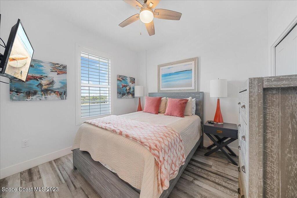 Cape Crossing Resort is only six years old! Fully Furnished 3 bedrooms, 2 bathroom condo. This unit has luxurious finishes including quartz countertops, tile flooring throughout, SS appliances, impact rated windows! Beautiful views of the river from your balcony, primary bedroom and living room. Cape Crossings resort has a waterfront restaurant on premises, pool, hot tub, gym, clubhouse, and sauna. Boat slips available to rent on premises as well! Navigational waterway just minutes too many amenities by boat, or kayak. On site management makes this purchase a hassle free investment or you can live here year around. Only 35 minutes to Orlando Airport and about an hour to Disney Parks.