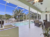 Welcome to exceptional Merritt Island living where space, quality, and location come together beautifully. This 4-bedroom, 2-bath pool home is set on a generous .42-acre lot in a sought-after, sidewalk-lined community featuring a community dock on the Indian River.From the moment you enter, the home impresses with its seamless flow, designed for both everyday living and entertaining. The interior showcases custom cabinetry and stylish finishes throughout. There is no carpet--only durable laminate flooring and tile, creating a clean, modern look. The open living spaces are filled with natural light, making it the heart of the home. Step outside to the screened pool and lanai, perfect for relaxing or hosting friends. The expansive fenced backyard offers privacy and outdoor enjoyment. A 3-car garage provides abundant room for vehicles and storage. Homes offering this combination of large lot, pool, upgraded interior, and community water access are rare on Merritt Island.View Today