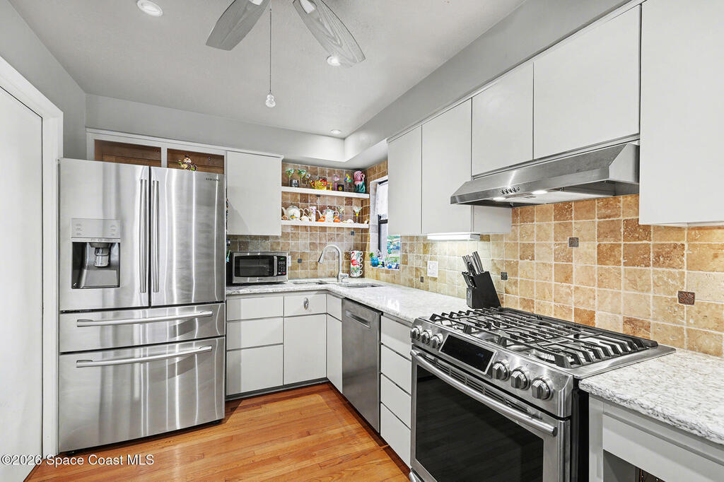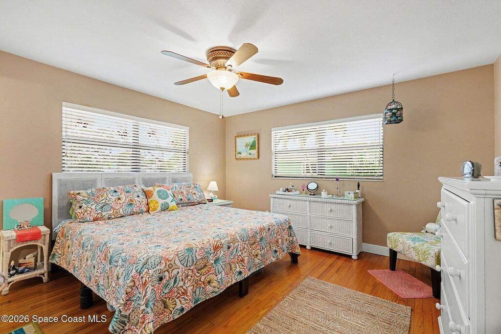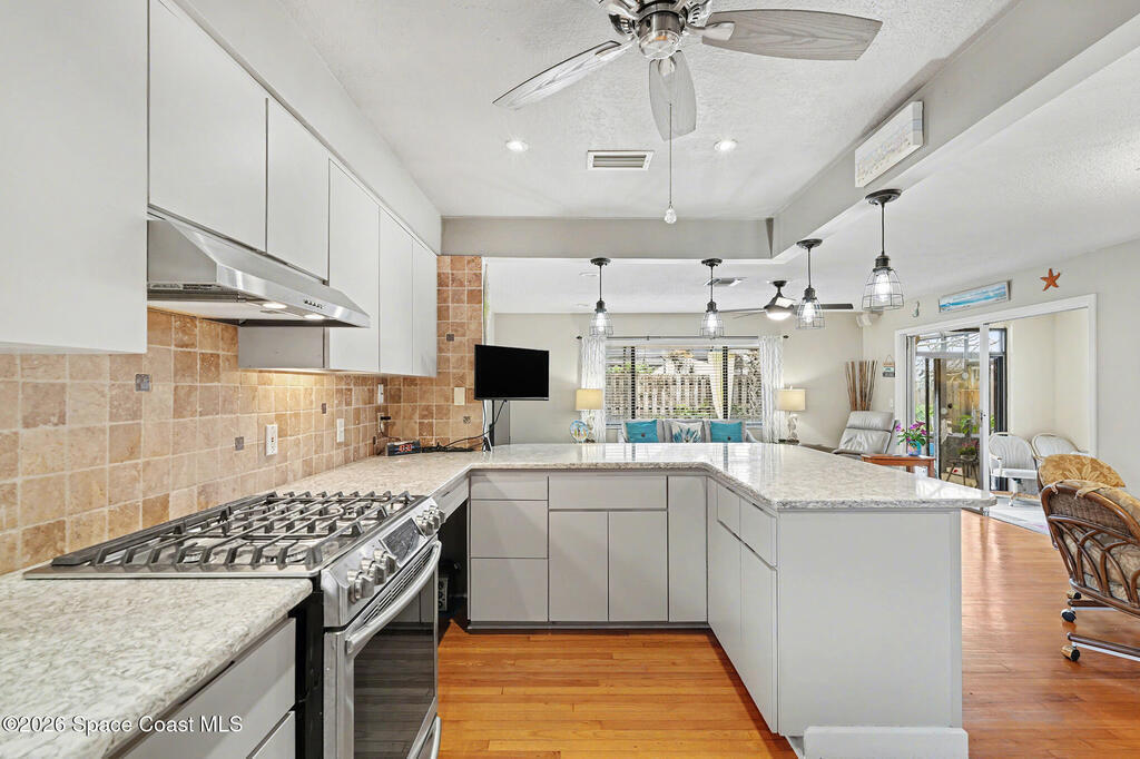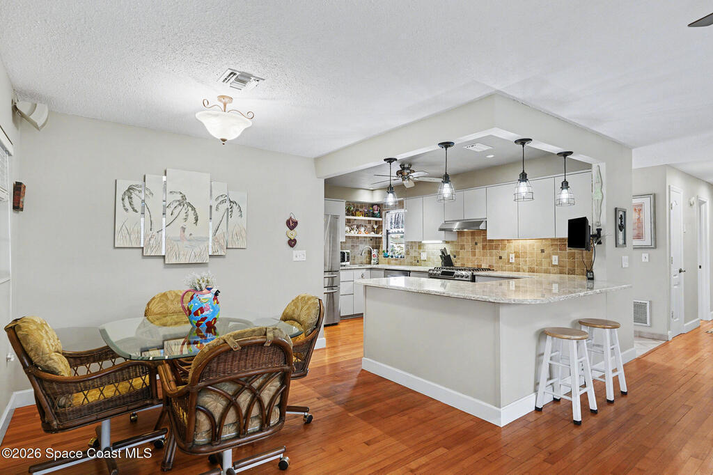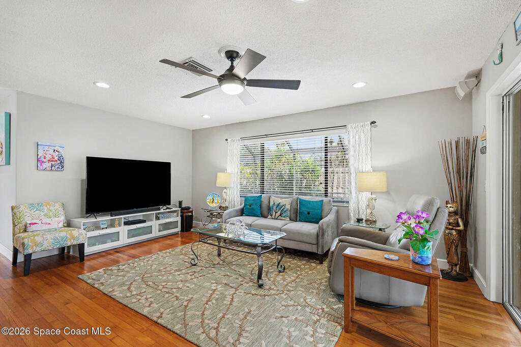 Beautifully updated 3-bedroom, 2-bath pool home with a versatile flex room, located in a highly desirable Merritt Island community. This well-maintained residence offers approximately 2, 300 square feet under air, plus an extended two-car garage. The home has been lovingly cared for with many wonderful features. Eat-in gourmet kitchen with quartz countertops, high end stainless steel appliances, and California closets in all bedrooms. Flooring is beautiful solid red oak plank throughout. Additional highlights include recessed lighting, updated bathrooms, one with beautiful spa tub. New Air conditioner. The private, low-maintenance yard is shaded by beautiful mature trees and showcases a 40-foot in-ground concrete pool. Thoughtfully designed floor plan with no HOA fees. Lots of storage room. Must see to appreciate.