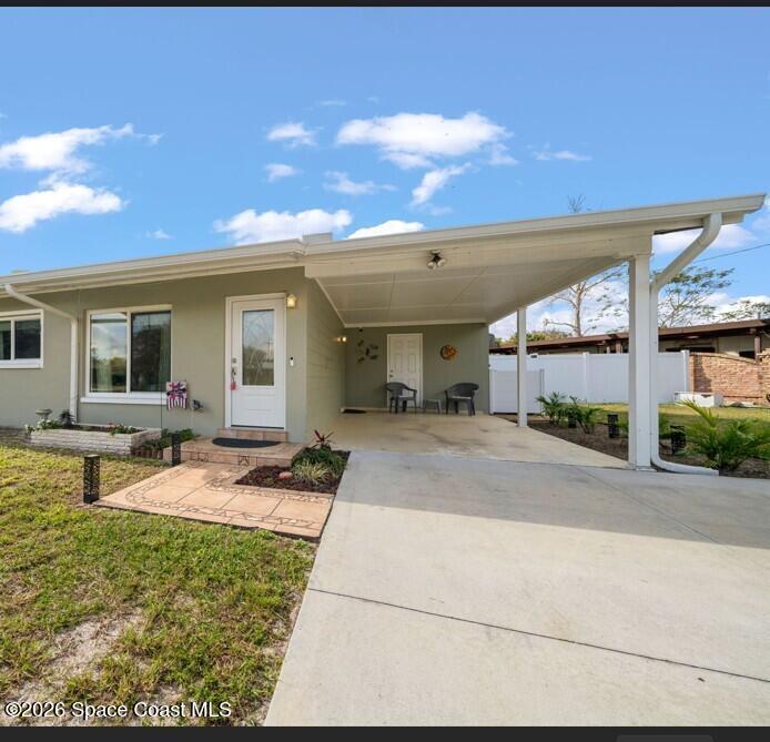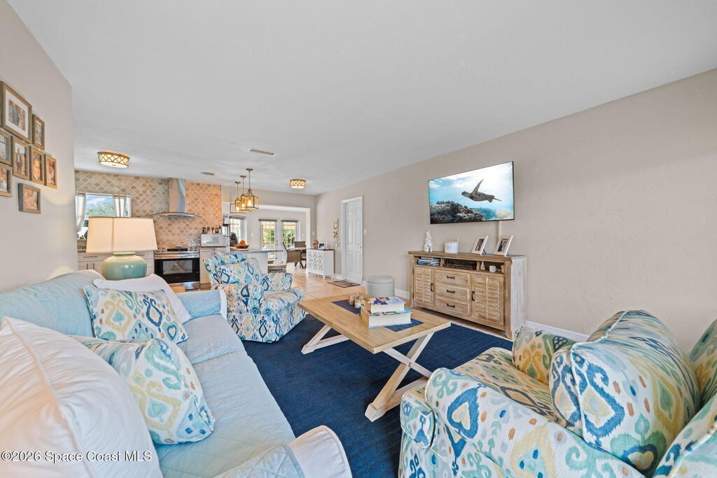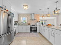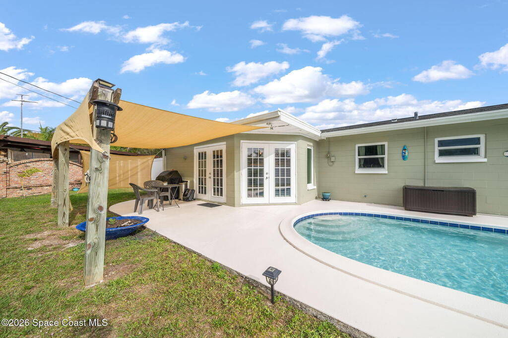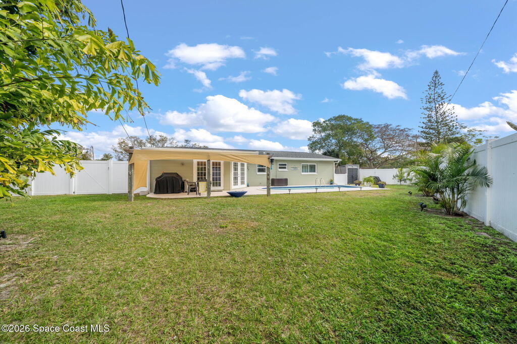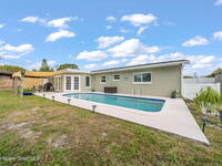 GORGEOUS POOL HOME IN MERRITT ISLAND! A picture perfect 3 bed/2 full bath home on an OVERSIZED LOT has an OPEN FLOOR PLAN with living room, spacious dining area or extended family room area with DOUBLE FRENCH DOORS that lead out to a LARGE FENCED IN BACKYARD with PRIVATE INGROUND SALTWATER POOL. This super cute home is in a wonderful quiet neighborhood and has updates galore to include; a brand new beautifully updated kitchen, quartz counters, tile backsplash, new stainless appliances, brand new designer lighting, tile throughout, updated baths, freshly painted interior & exterior, refinished pool, all new impact windows, new doors & baseboards, new white vinyl fence, a utility room w/washer & dryer, hvac is 2021, HWH is 2018 and roof is 2018! The extra-large backyard is perfect for entertaining or plenty of room for the kids & pets to play! This move in ready home is a great investment or a family/vacation home! Only 10 min to the beach, 40 min to MCO & theme parks, 20 min to KSC!