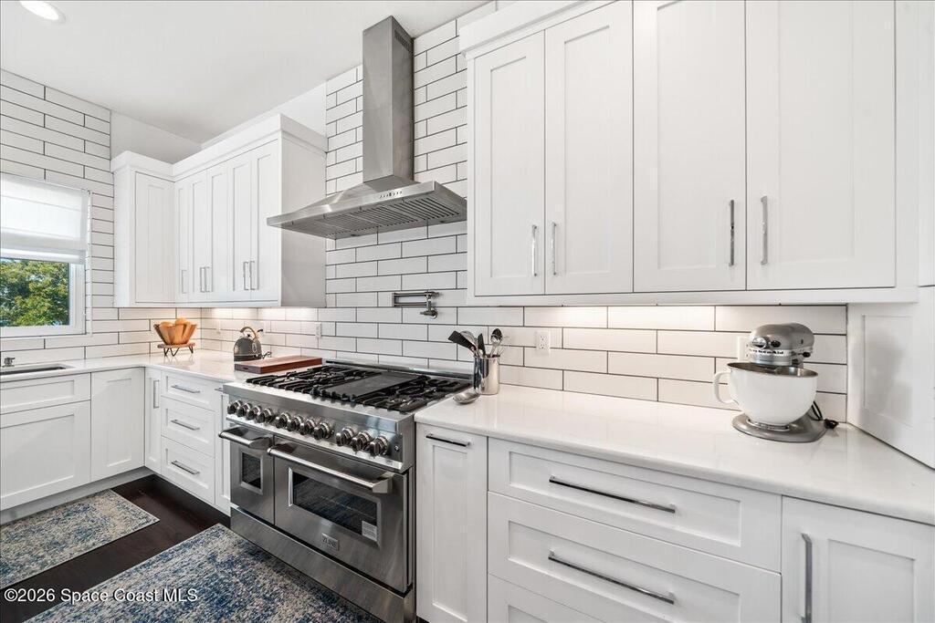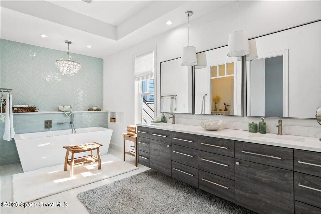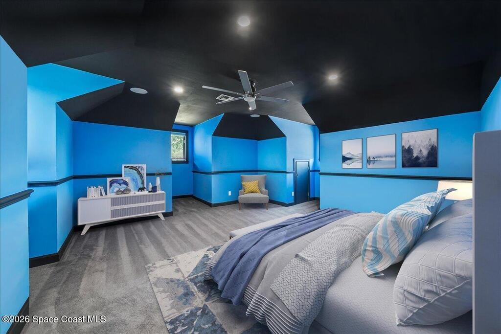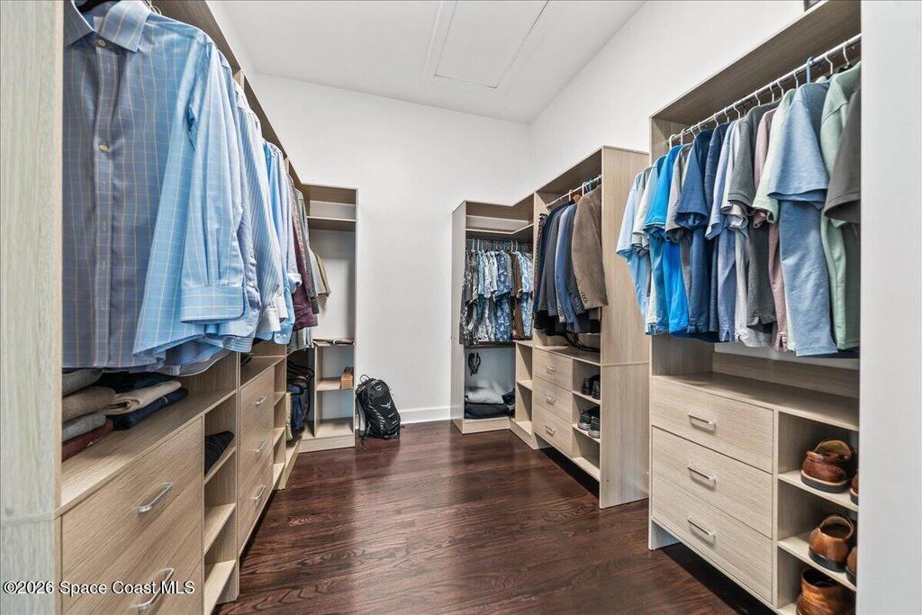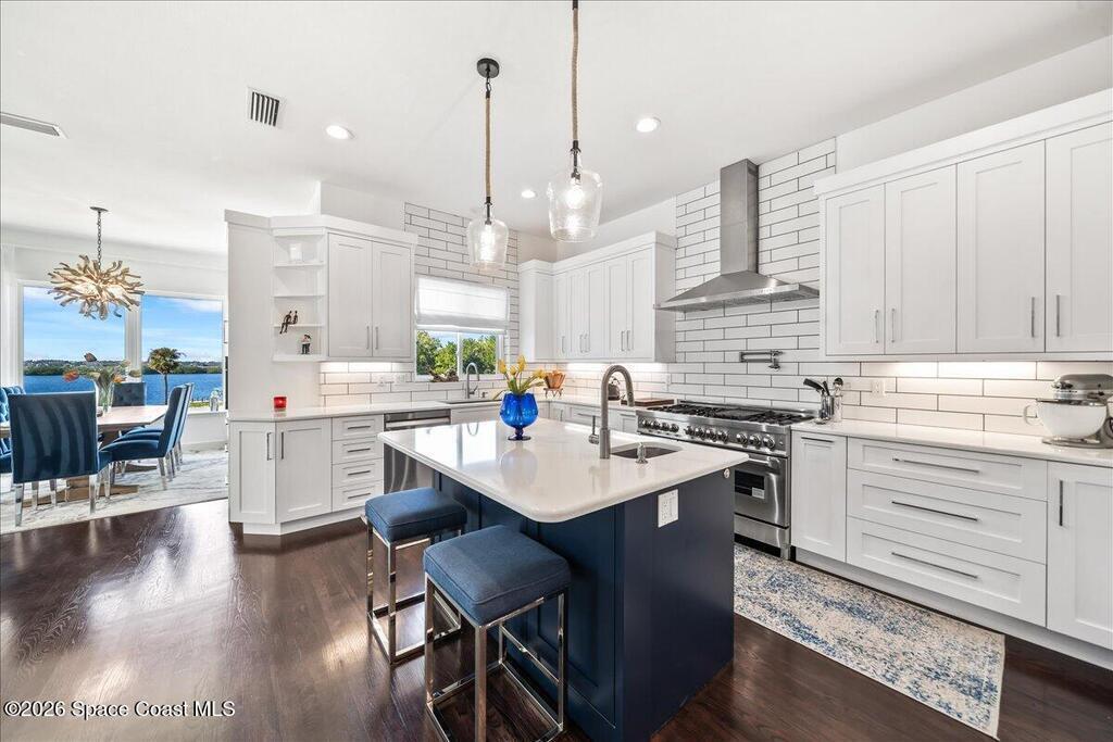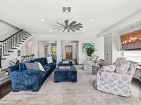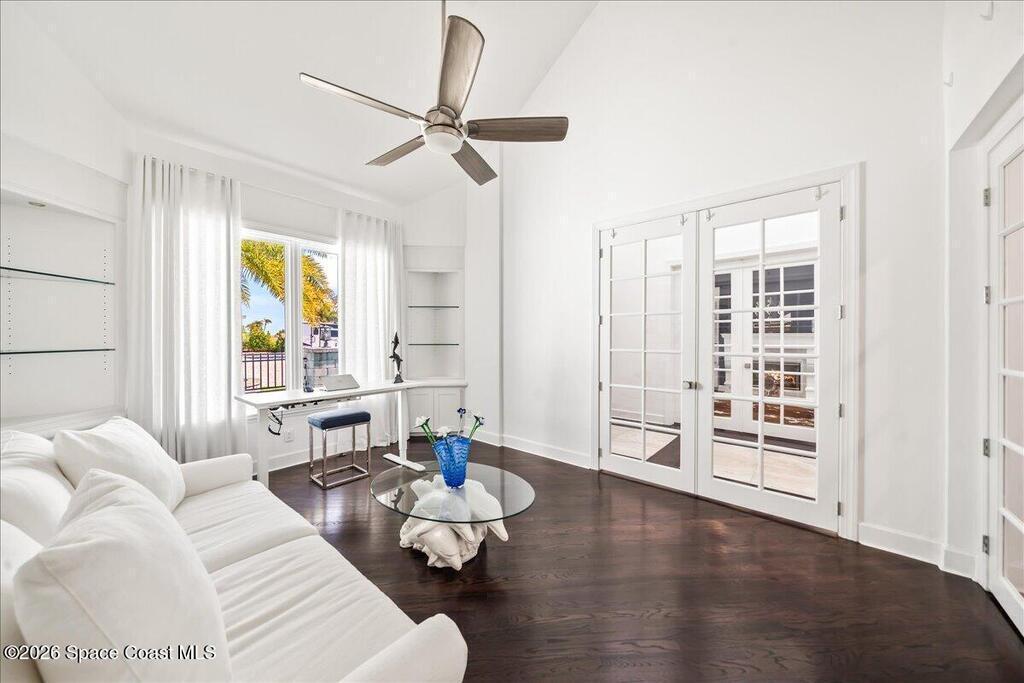 From the moment you step through the front door, you're greeted by sweeping, uninterrupted views of Honeymoon Lake, an immediate sense of arrival that sets the tone for the entire residence. Positioned along one of Brevard County's most coveted waterways, this singular waterfront estate is a study in quiet luxury and intentional design. Custom-stained oak hardwood floors, layered textures, and a gas fireplace create interiors that feel both polished and inviting, while the home's thoughtful layout draws the eye effortlessly toward the water beyond. Designed for seamless indoor-outdoor living, the exterior unfolds into a resort-style setting where a marble-framed pool, summer kitchen, and expansive pavered terraces invite long afternoons and elegant evenings. A powered dock with dual boat lifts provides direct access to the water, complemented by a Trex deck ideal for sunrise departures and sunset returns. Built with resilience and longevity in mind, the home features a metal roof,