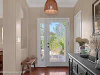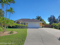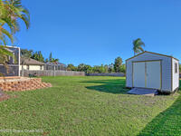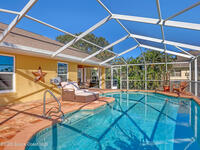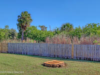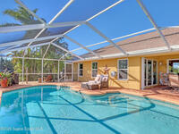 There's a nice feel to this Merritt Island pool home -- comfortable, functional, and ready to enjoy. The kitchen anchors the interior with granite counters and stainless appliances, while a mix of hard-surface and carpet flooring keeps everyday living practical. Helpful upgrades include pull-out shelving, Ring doorbell, Nest thermostat, new double-paned windows (2025), and full storm shutters.The screened lanai surrounds a recently resurfaced, solar-heated pool. An outdoor shower helps keep the inside dry, the side deck is great for grilling or casual dinners, and a firepit creates a relaxing gathering space. A storage shed adds extra room for tools and gear.Behind the home, the canal offers kayak and canoe access, and the yard features producing fruit trees -- mango, star fruit, jackfruit, lemon, and avocado.No HOA.