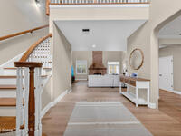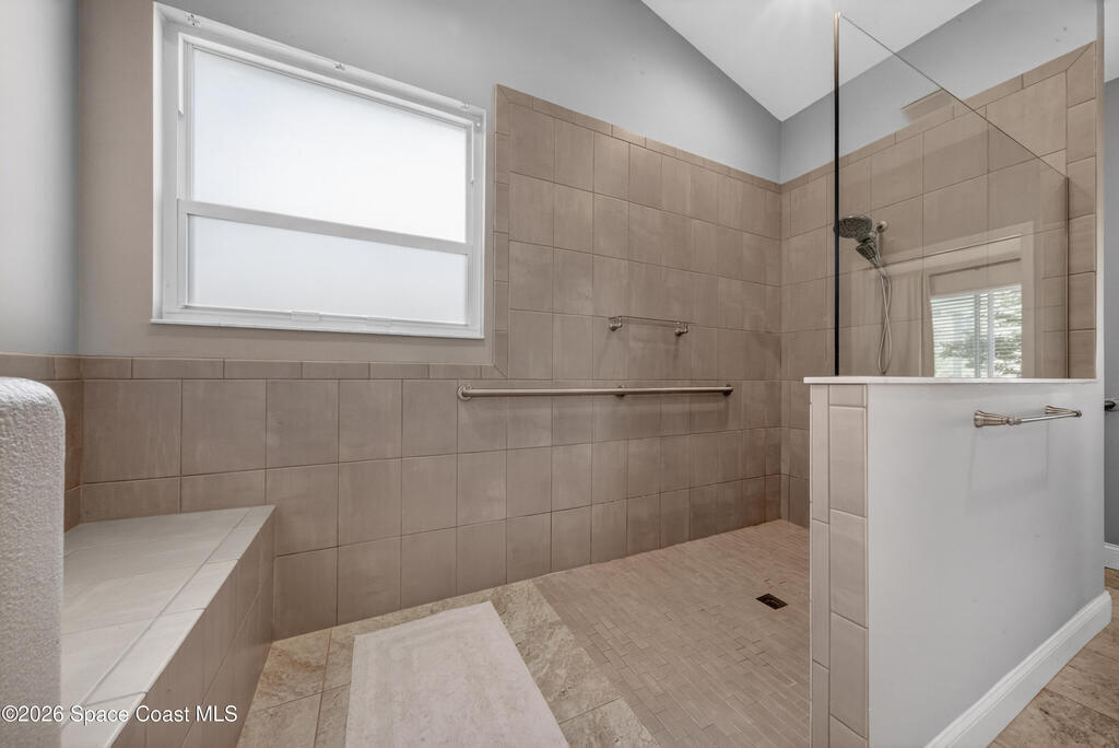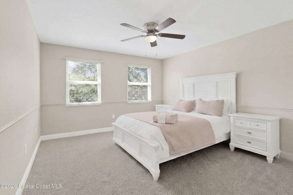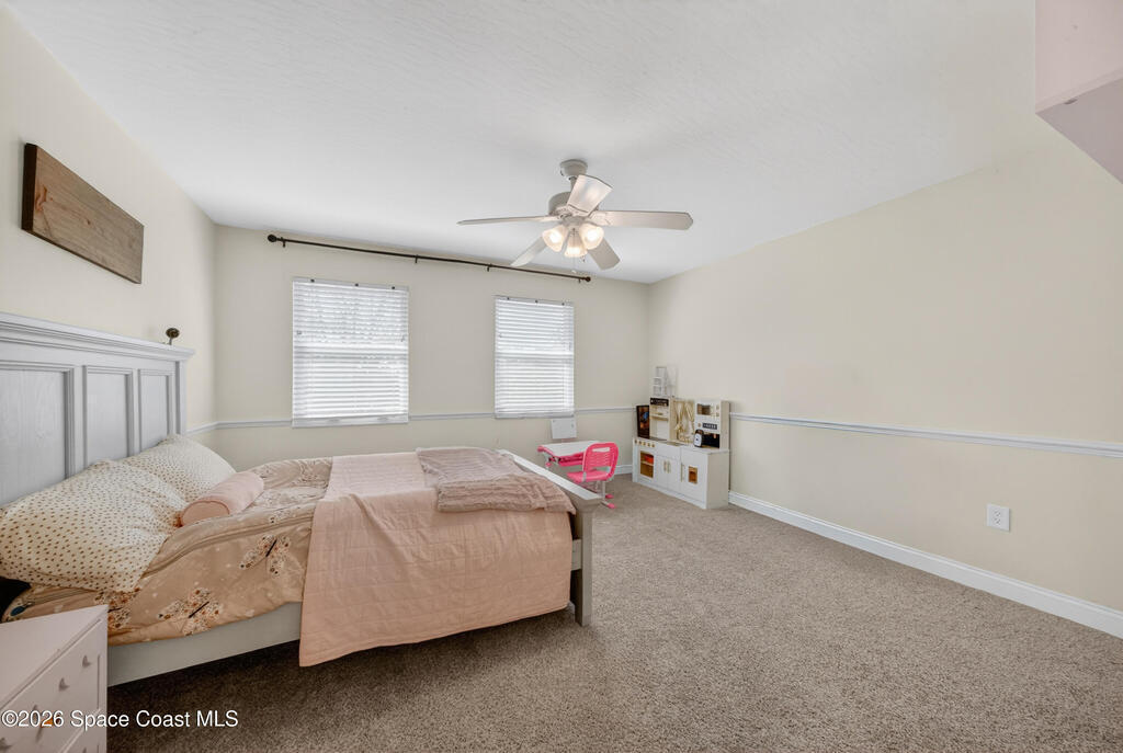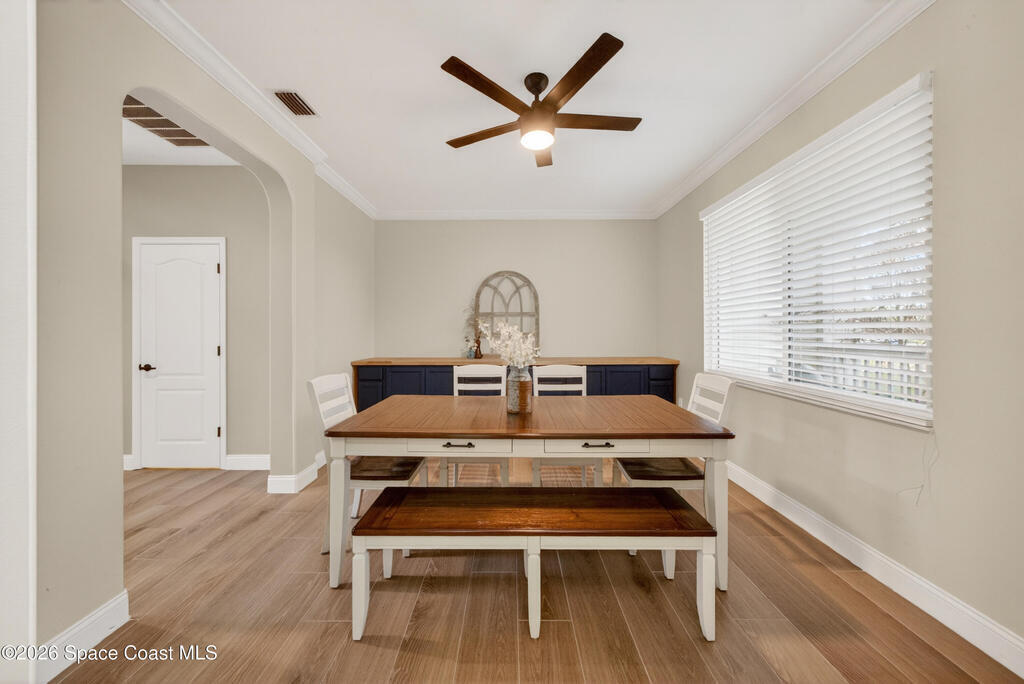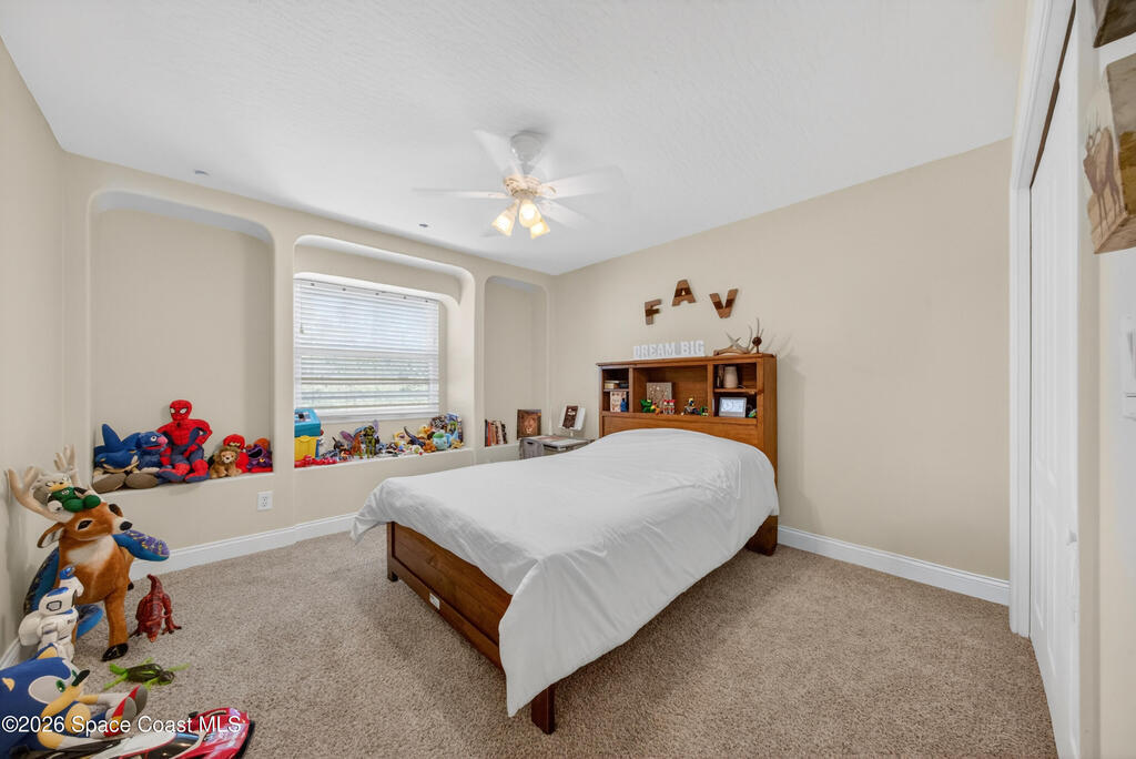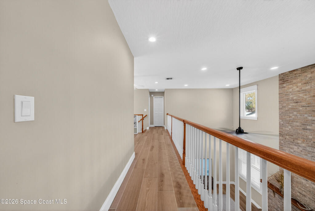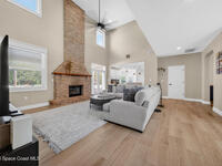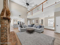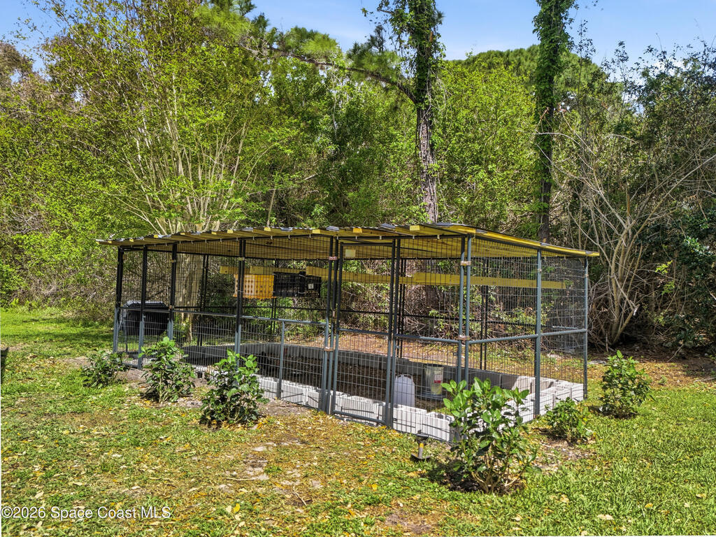 New roof installed June 2025 and Category 5 hurricane windows already in place; providing immediate value and peace of mind in this spacious Merritt Island acreage property.Situated on a full acre, this 5-bedroom, 3.5-bath home offers a welcoming presence from the covered front porch to the grand foyer entry and open layout beyond. The remodeled kitchen features a stunning waterfall island, upgraded appliances, and a design that flows seamlessly into the main living areas; ideal for gathering and everyday living.Tile flooring runs through the primary spaces, complemented by a charming brick fireplace that adds warmth and character. The primary suite is conveniently located on the first floor, offering privacy and flexibility within the home's thoughtful layout.Step outside to the covered back porch overlooking the pool and expansive backyard; perfect for outdoor dining, relaxing, or enjoying the surrounding green space.