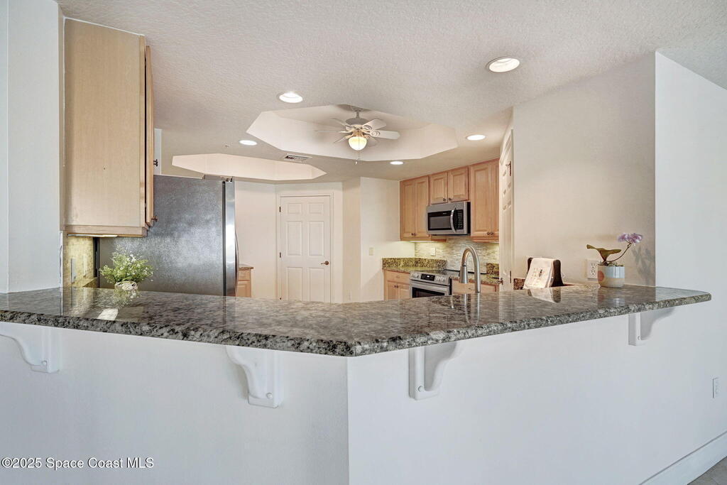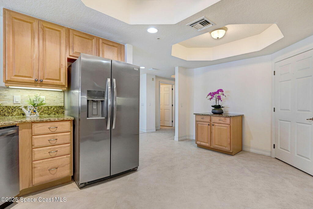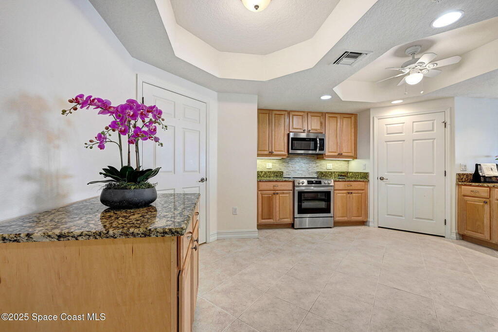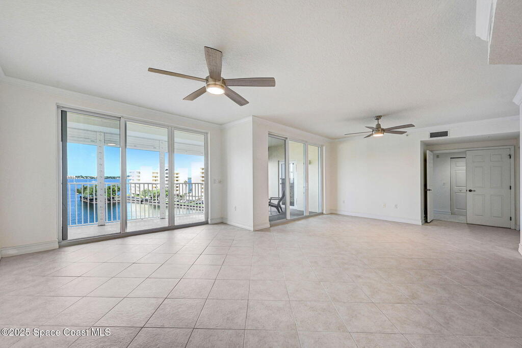 Enjoy waterfront living in Island Pointe Condominium, a gated luxury community on the Indian River in Merritt Island. This spacious 3-bedroom, 2-bath condo offers stunning river views and spectacular sunsets from your private balcony. The open floor plan features 10' ceilings and a large great room perfect for relaxing or entertaining. The kitchen includes granite countertops, new stainless-steel appliances, a walk-in pantry, and a rolling island. A versatile flex space is ideal for an office or formal dining. The primary suite features a whirlpool tub for a spa-like retreat. Brand new A/C installed March 2026. Resort-style amenities include two heated pools, a clubhouse with fitness center and sauna, plus tennis, pickleball, and basketball courts. Includes a private 1-car garage and covered parking. Conveniently located near Cocoa Village, the beaches, and major employers including NASA and SpaceX.