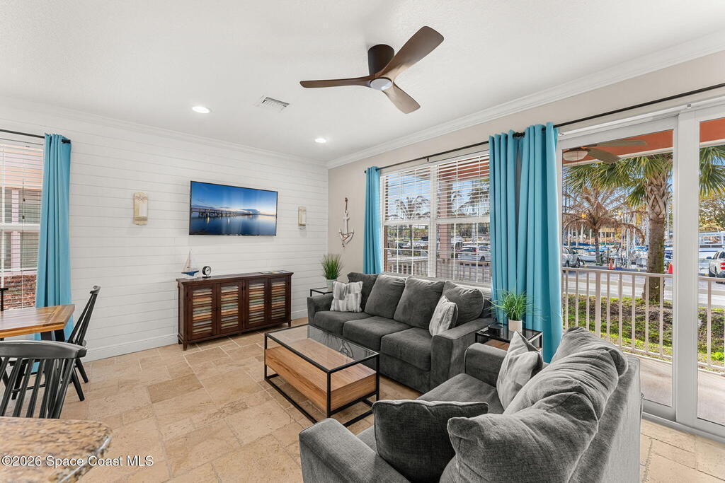 Tropical Paradise Awaits in This Key West-Inspired Townhome!Welcome to your dream home in an exclusive waterfront community, where every day feels like a vacation. Fresh paint, new furniture, updated! This beautifully designed 2-story FULLY FURNISHED townhome blends the charm of Key West architecture w/ modern luxury, offering 3 spacious bedrooms and 2.5 baths, perfect for full-time living or a weekend getaway.Step inside to find an open floor plan w/ coastal touches + upscale finishes throughout. The gourmet kitchen features SS appliances, granite countertops, flowing seamlessly into the dining + living areas-ideal for entertaining or simply relaxing.Outside, enjoy the best of waterfront living! This community boasts a private marina-perfect for boating enthusiasts along with a resort-style pool, spa, and an on-site restaurant where you can savor local cuisine and live music.Navigable canal to Indian River, Banana River + direct ocean access.