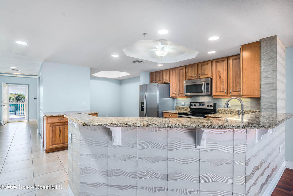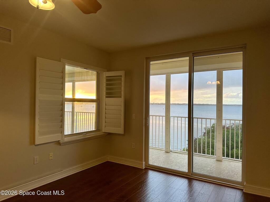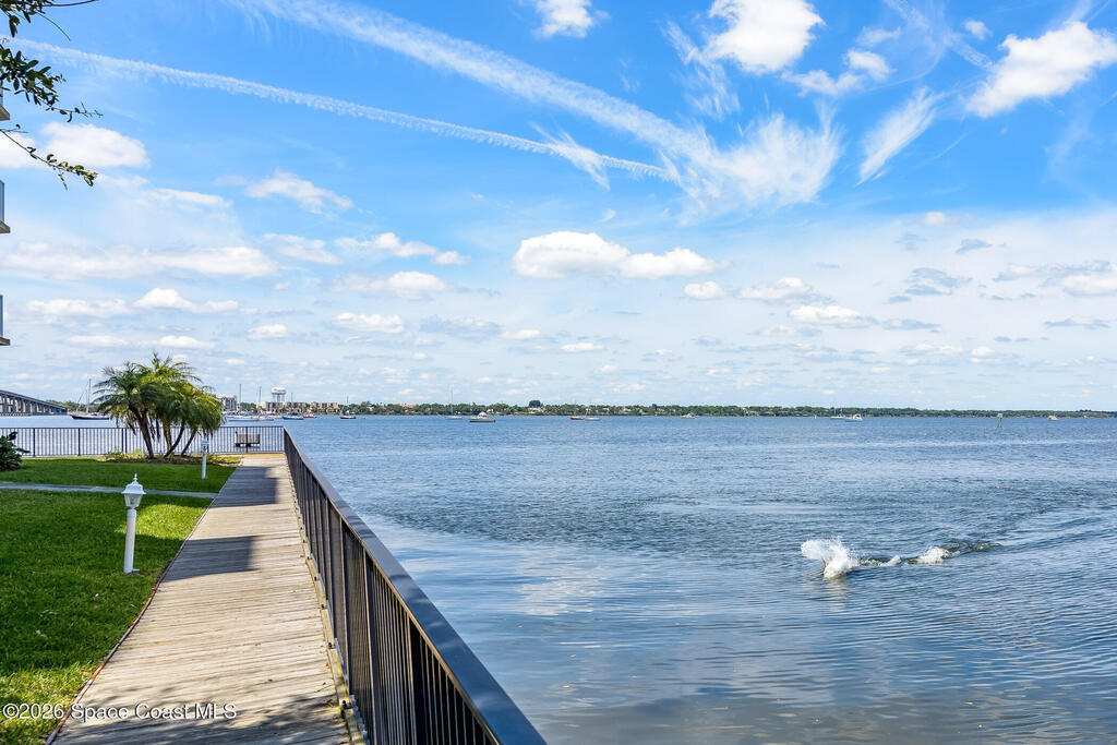 Watch dolphins play from your balcony! Enjoy luxury waterfront living on the Intracoastal Waterway in the gated Island Pointe Condominium community! This spacious 3rd-floor, 3-bedroom, 2-bath residence offers breathtaking direct Indian River views and spectacular sunsets. The open floor plan features a large great room ideal for entertaining and a well-appointed kitchen with granite countertops, stainless steel appliances and movable island. The primary suite offers beautiful water views, generous closets, and spacious bathroom. Additional features include electric storm shutters, custom built-in shelving, and a laundry room with utility sink. Includes a private one-car garage. Two elevators in the building. Enjoy resort-style amenities including two heated pools, tennis, pickleball, fitness center, clubhouse, and riverfront boardwalk. Conveniently located minutes to beaches, Port Canaveral, Kennedy Space Center, NASA, and SpaceX. 45 minutes to Orlando Airport.