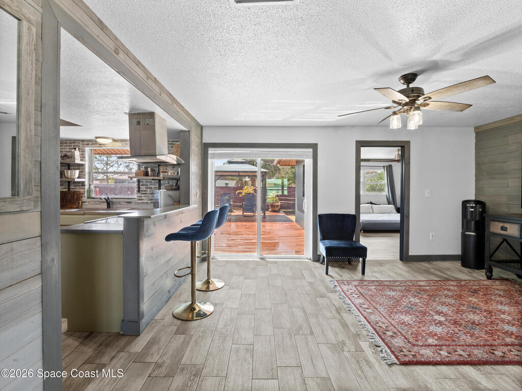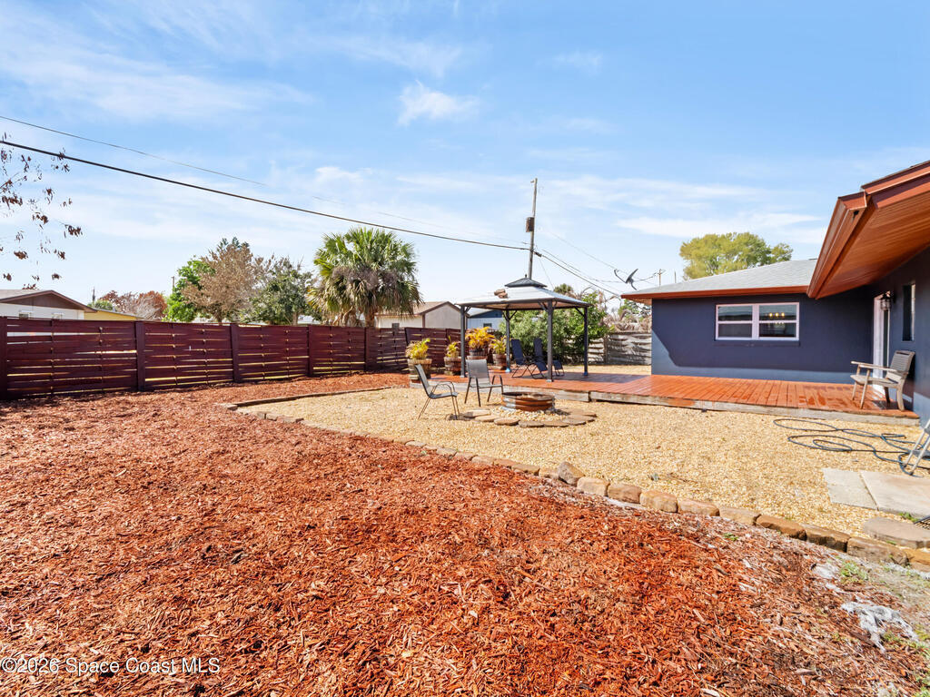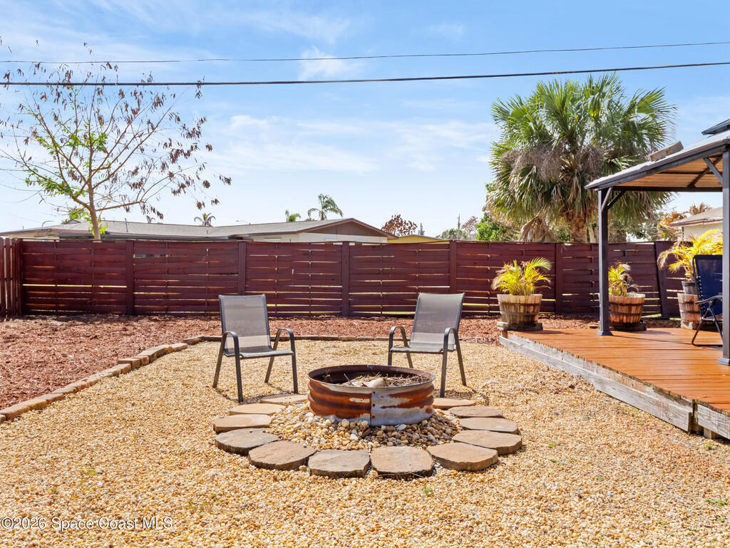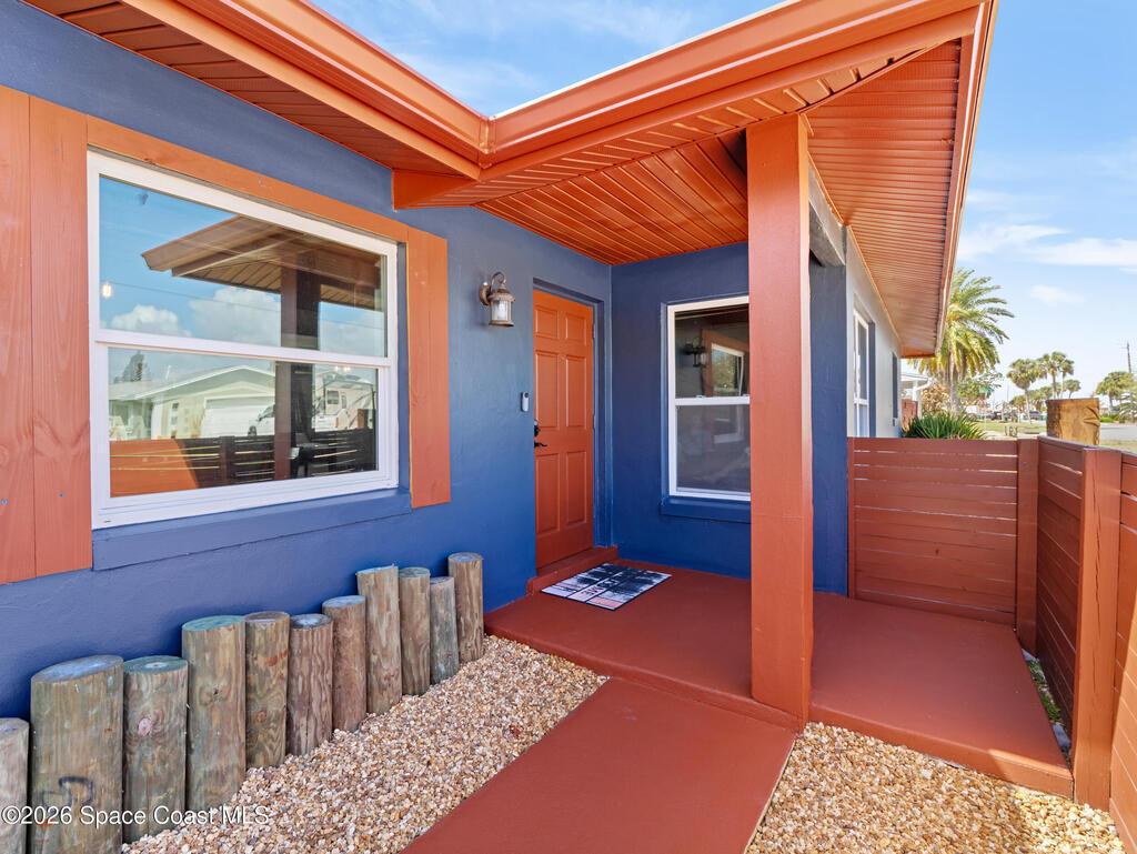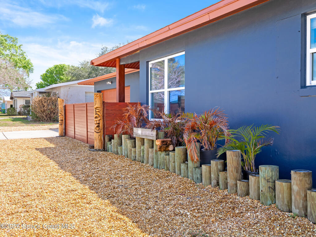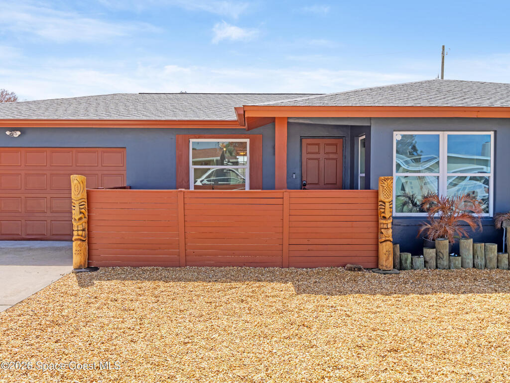 Welcome to this beautifully updated Merritt Island home offering 3 bedrooms, 2 baths, and inviting indoor-outdoor living. A private front courtyard creates a welcoming entry and the perfect space for relaxing or entertaining. Inside, the home features an open and comfortable layout with wood-look flooring, warm wood accents, and abundant natural light throughout. The kitchen offers stainless appliances and flows easily into the dining and living areas, making everyday living effortless. The split bedroom design provides privacy for the primary suite while keeping guest rooms conveniently located. Recent improvements include a newer roof, updated systems, and fresh exterior paint that adds standout curb appeal. The spacious yard offers room to garden, play, or create your own outdoor retreat. Ideally located near the Banana River, parks, shopping, dining, and just a short drive to Cocoa Beach and Port Canaveral, this home offers the best of Merritt Island living.