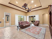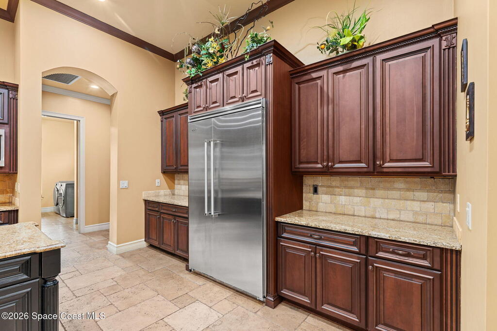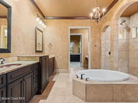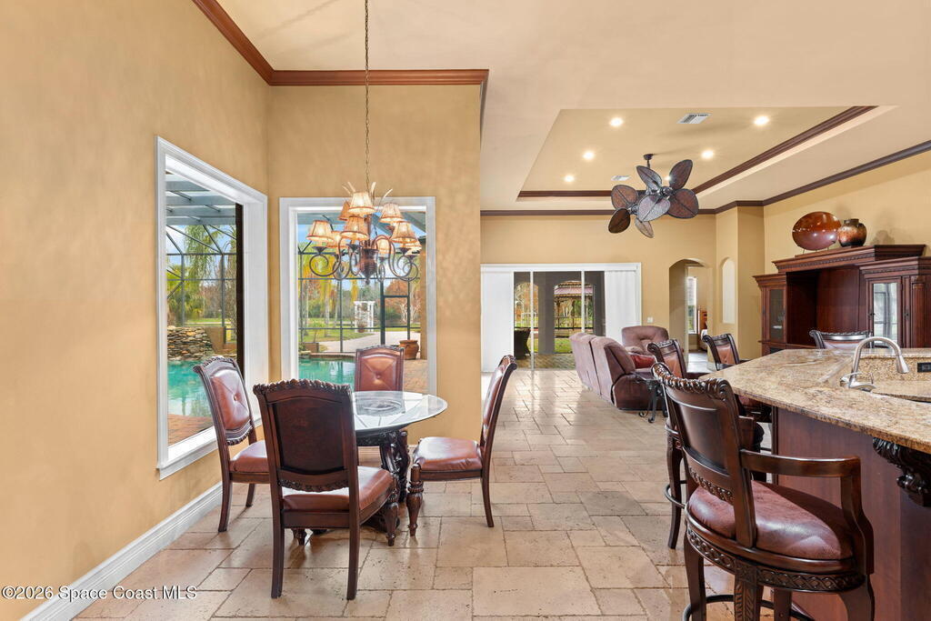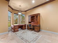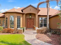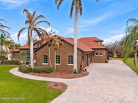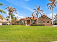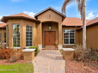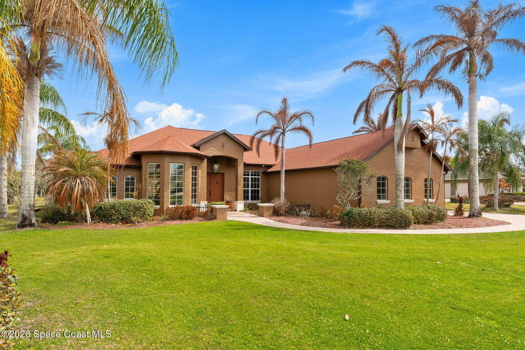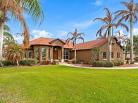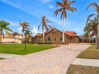 An extraordinary opportunity to own a custom-built estate crafted by one of the region's most respected luxury builders, originally constructed as a personal residence and perfectly situated on a full acre of beautifully landscaped grounds. Ideally located just minutes from Cocoa Beach, the world-famous shoreline, Port Canaveral, premier shopping, and renowned restaurants--yet privately tucked away within its own peaceful sanctuary. From the elegant old-world textured exterior to the travertine flooring throughout, every detail reflects timeless craftsmanship and refined design. Recent upgrades include a brand-new roof, Viking refrigerator with premium Viking appliances, new water heater, custom front entry door, and new washer. At the heart of the home is a chef's island kitchen featuring rich cherry cabinetry with chocolate glaze, granite countertops, and high-end finishes.
