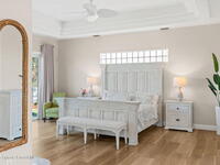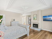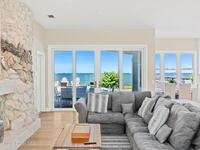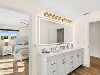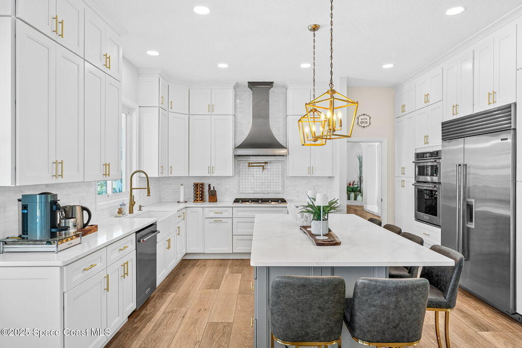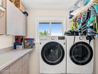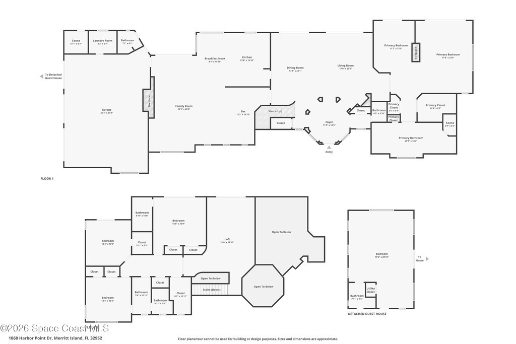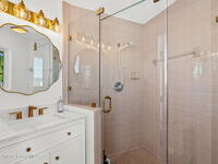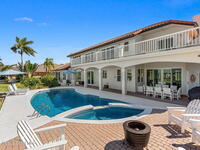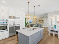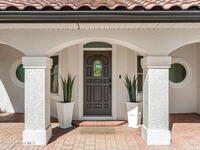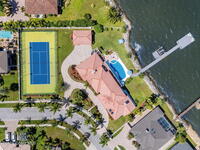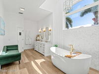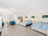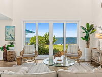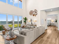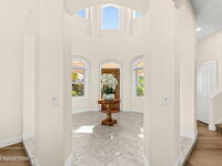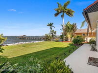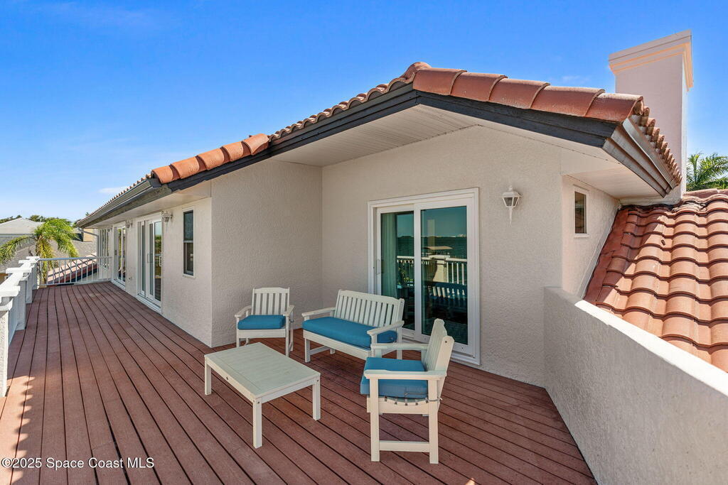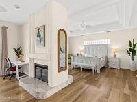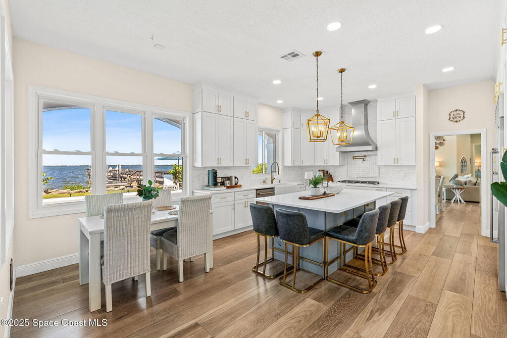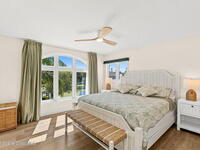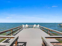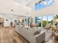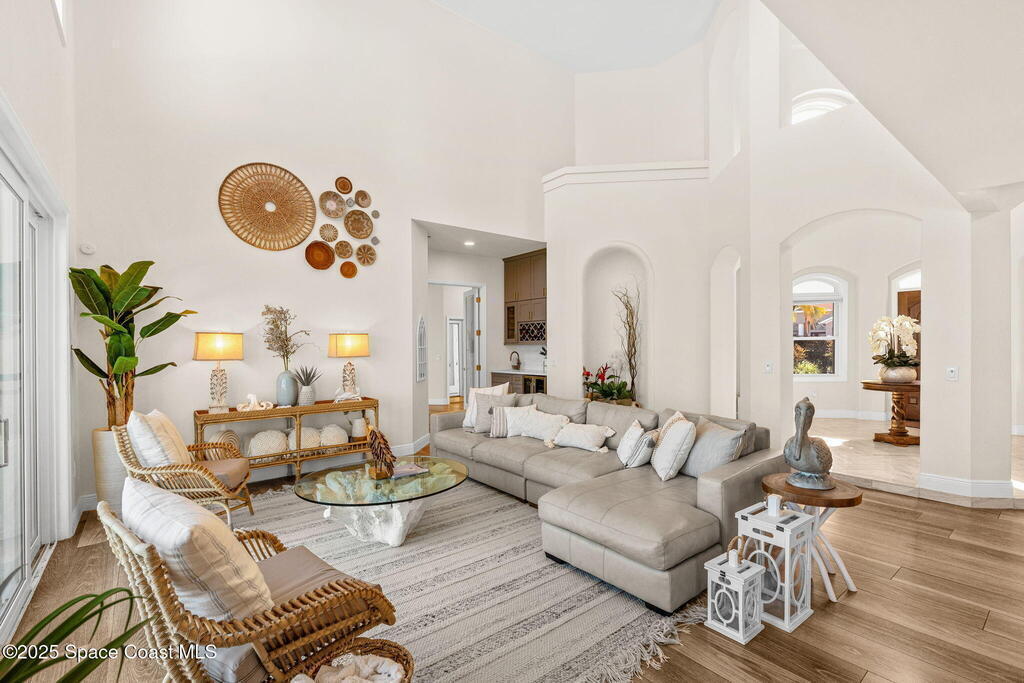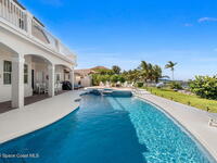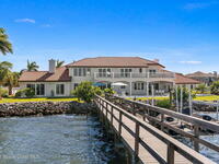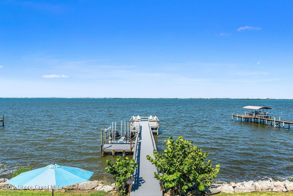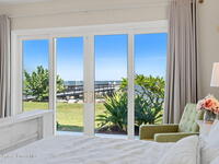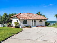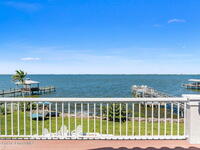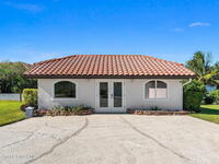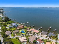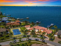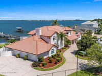 An extraordinary Space Coast luxury estate, completely reimagined in 2023 with lavish modern upgrades, offering the perfect blend of sophistication and coastal living. Set on 141 feet of elevated Intracoastal shoreline, this deep water sanctuary delivers sweeping river views, with dolphins playing nearby, manatees gliding past, and spectacular rockets launching into the sky. Floor-to-ceiling impact glass fills the home with natural light and frames the ever-changing water scenery, seamlessly connecting indoor and outdoor living. At the heart of the home, a chef's gourmet kitchen features custom cabinetry, quartzite countertops, premium appliances, and designer lighting, flowing effortlessly into open-concept living and dining spaces. The downstairs primary suite is a true retreat, with a cozy sitting area, double-sided fireplace, spa-inspired bath with soaking tub, rain shower, and private sauna. 3 additional bedrooms in the main house are thoughtfully designed with elegant finishes