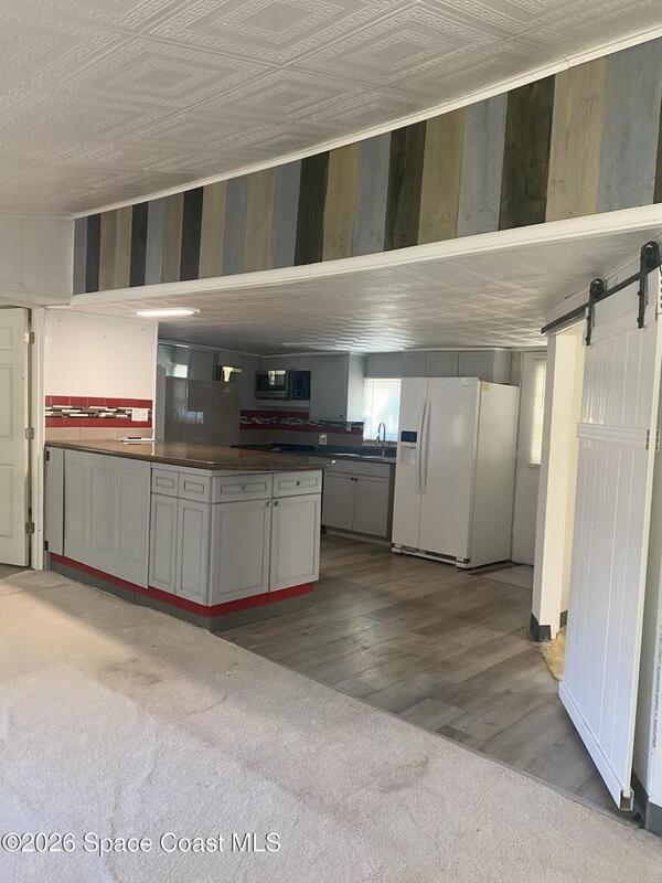 2-bedroom, 2-bath manufactured home on its own land in Newfound Harbor, Merritt Island -- no HOA or community fees. This fixer-upper offers an excellent opportunity for investors or owner-occupants looking to add value: a functional layout with 2 separate bedroom suites. Open living dining & kitchen space. Carport & shed on .16 acre lot all your own. Deeded access driveway is shared with property behind the subject property.