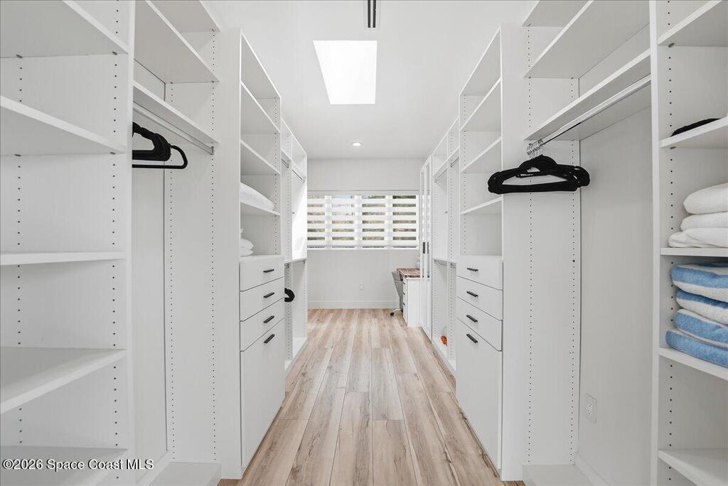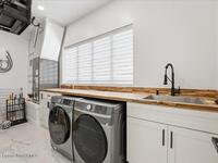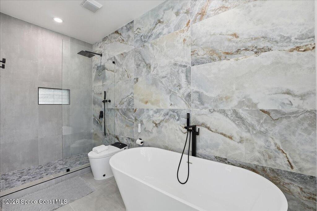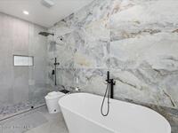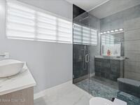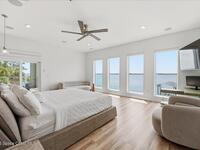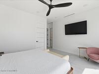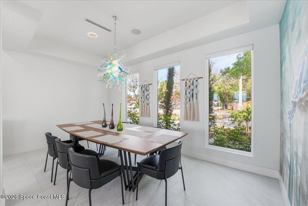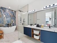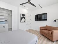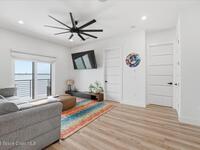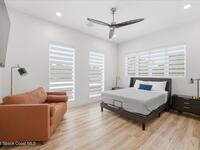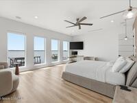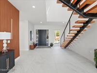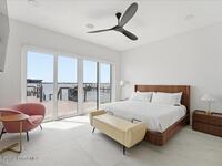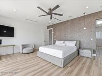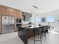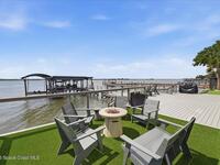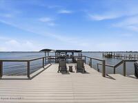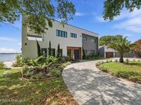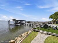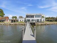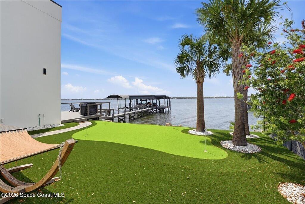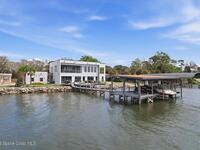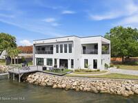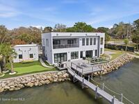 Modern Waterfront Masterpiece on Merritt Island with 142 feet of direct Indian River frontage. This 2024-built two-story home features full concrete block construction, a commercial-grade roof, and high-end modern finishes throughout. Offering 5 bedrooms, 4 full baths, and a 2-car garage, this fully furnished residence is truly turnkey. The designer kitchen, custom built-in closets, smart home features, motorized shades, and smart toilets elevate the living experience. The expansive upstairs primary suite includes a private covered terrace, wraparound closet, and a stunning spa bath with designer tile and luxury shower. Enjoy a covered boat dock with lift, jet ski dock, putting green, and side yard. West-facing balconies capture breathtaking sunsets with views of dolphins and manatees. Located near Cocoa Village with quick access to the Atlantic Ocean, 45 minutes to Orlando International Airport and 1 hour to Disney. Truly one of a kind.