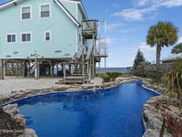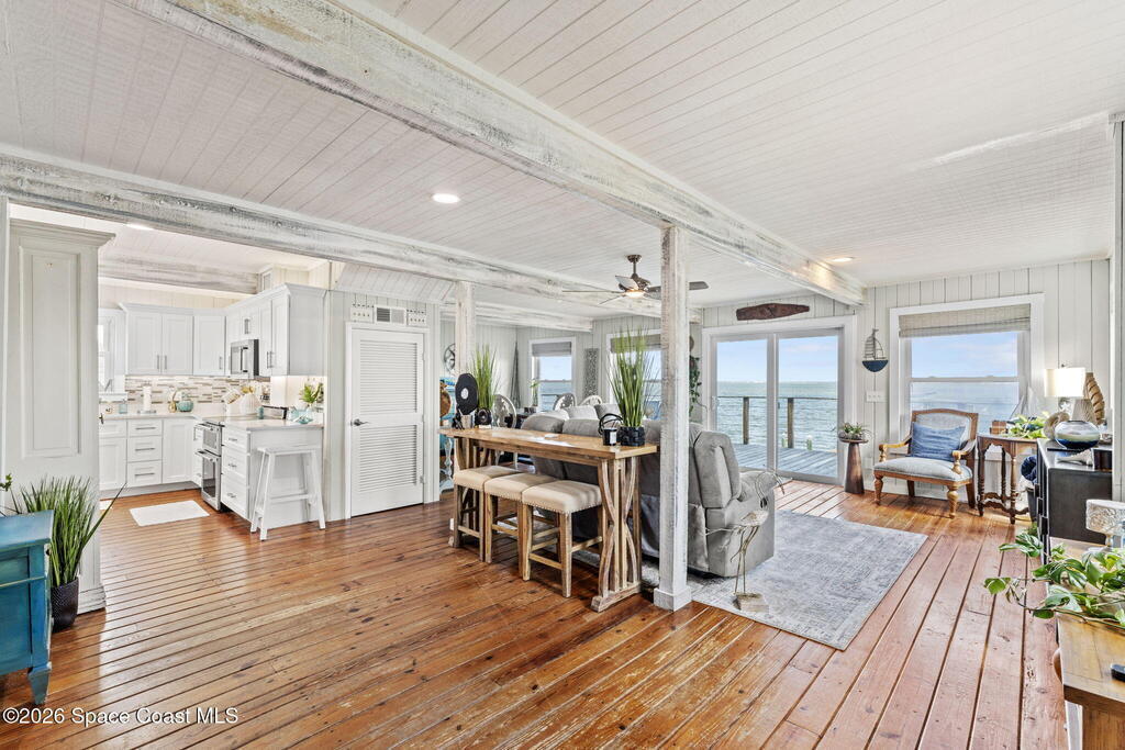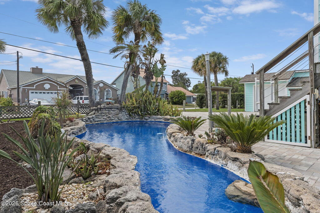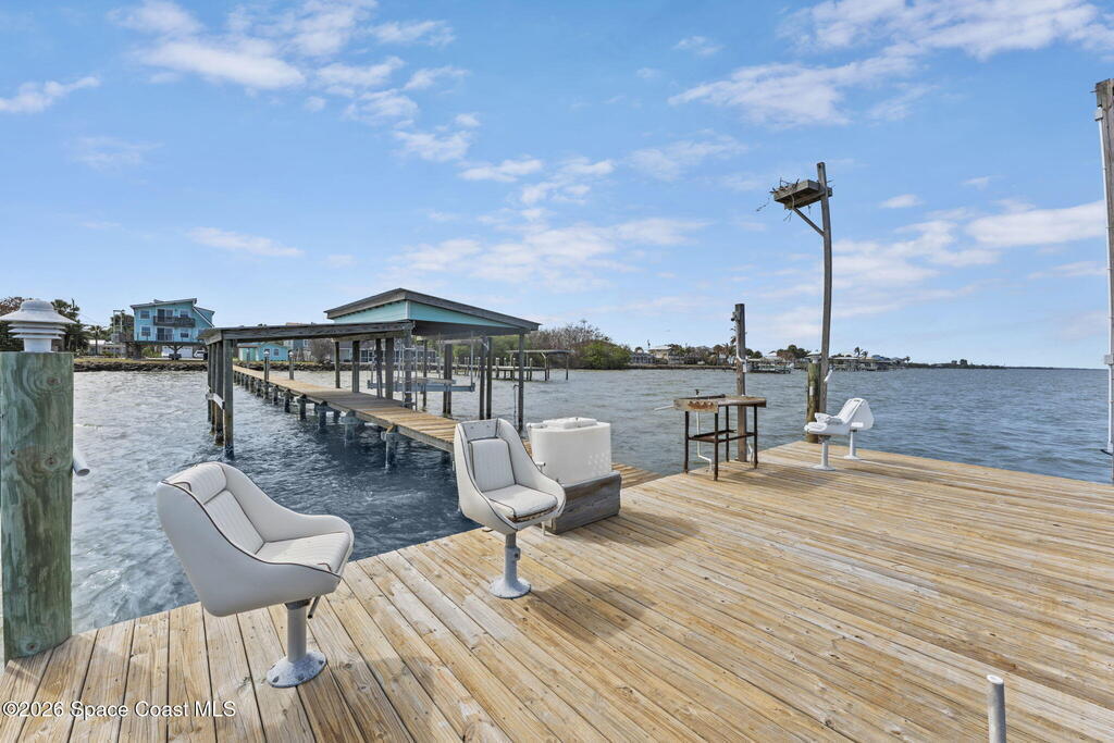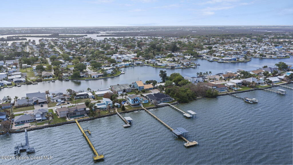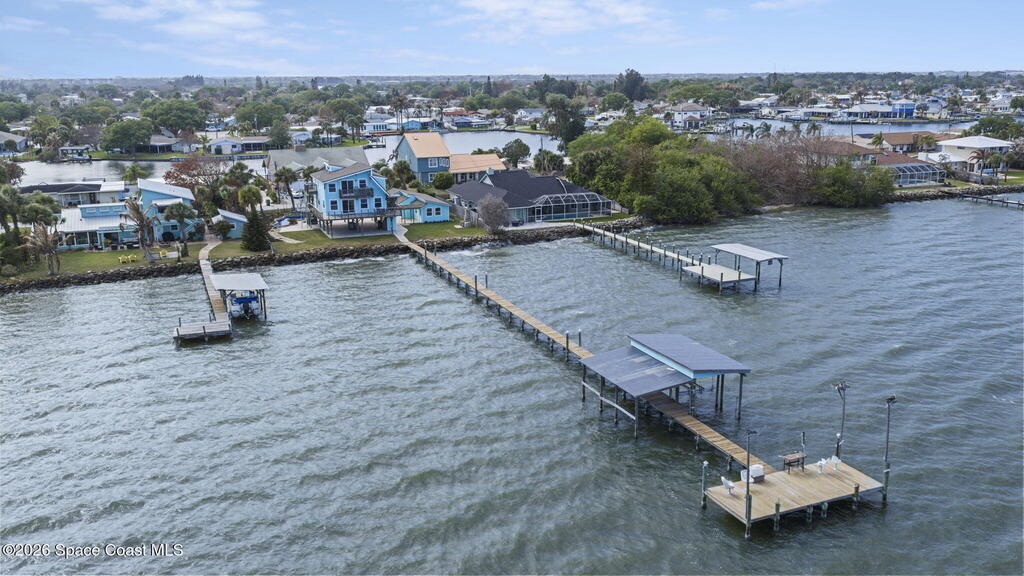 If Florida had a home, this would be it. Completely renovated, this elevated stilt home sits directly on the Banana River with wide open water views and direct access to Port Canaveral. Enjoy everything the Space Coast has to offer, from dolphins and manatees in your backyard to rocket launches overhead. A private dock with boat lift makes getting out on the water a breeze. Inside, the home offers 3 bedrooms, 2 full baths, and 2 half baths with an open layout centered around a chef's kitchen featuring quartz countertops and stainless steel appliances, flowing into the main living and dining areas with the river views front and center. The primary suite includes a private balcony overlooking the water. Outside, enjoy a pool, stone fireplace, and a paver driveway set within a well maintained yard. A detached air conditioned flex space with river views offers options for an office, studio, or additional living area. Well updated and positioned for true waterfront living.