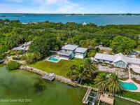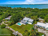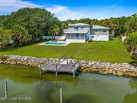 This is it stop the car I found your new home! Imaging calling this view home everyday. Located direct water front on the banana river this home is an oversized 3 bed 2 bath that offers 2 living spaces, one complete with a wood burning fireplace. Grand screened in Lani over looking the inground pool and river, and a second private open air balcony off the master bed room. Newer Flooring, appliances and fresh paint just completed. Down stairs in the garage there is a partially finished Florida basement that can be used for all kinds of things, utility, storage or a fun game room. private dock on the water, pool and lawn care included schedule your tour today!