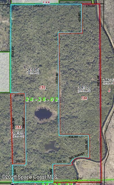 Beautiful wooded 44.39 acres in Merritt Island along the snake river which leads to theBarge Canal which leads to Indian river, Banana river and out to the Atlantic OceanThe property is wooded with some areas that are cleared. Beautiful views of the space center. Many possibilities.