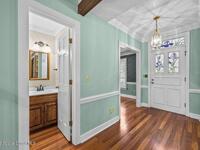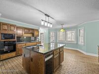 This exquisite custom-built estate is perfectly situated on .78 acres in the highly sought after, guard-gated, Ravine's neighborhood. The home features 4 bedrooms, 4 full baths, and 1 half bath, including a dedicated MOTHER-IN-LAW SUITE with its own PRIVATE ENTRANCE. Inside, elegant hardwood flooring and a welcoming foyer is flanked by formal dining and living rooms. The great room serves as a focal point, boasting wood-beamed ceilings, a wood burning fireplace and three floor-to-ceiling windows that have stunning views of the tree-lined pond in the backyard. Step into a chef's dream kitchen, featuring granite countertops, an expansive island, and a built-in double oven with a separate cooktop. Solid wood cabinetry and a generous closet pantry provide ample storage for all your culinary essentials and entertaining needs. Enjoy the convenience of a dedicated office and an enclosed sunroom overlooking the back porch, wrapped in wood decking ideal for gatherings.