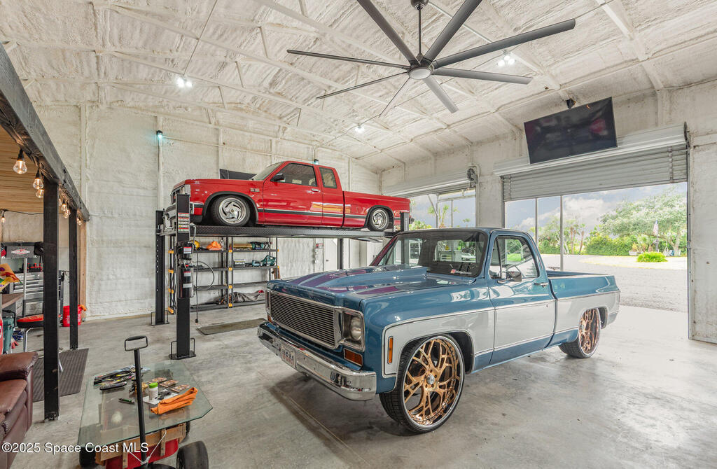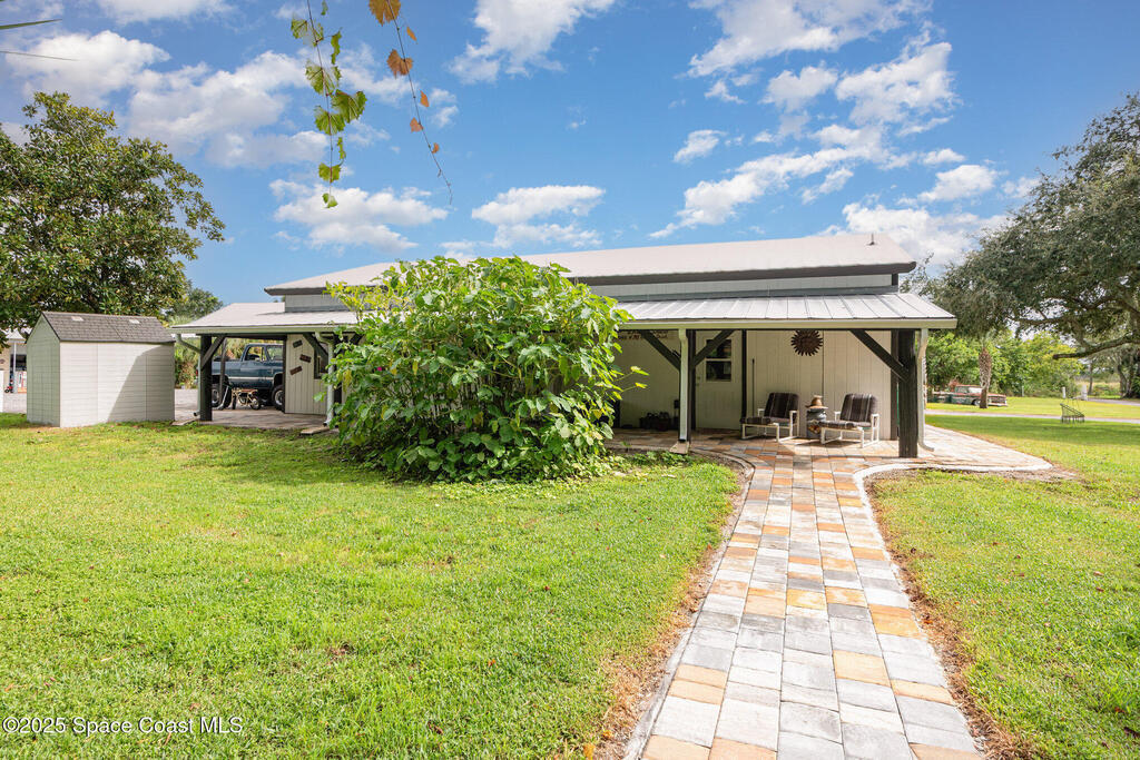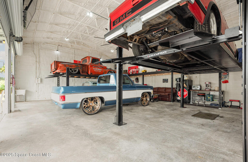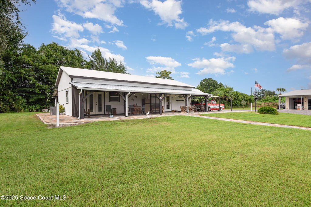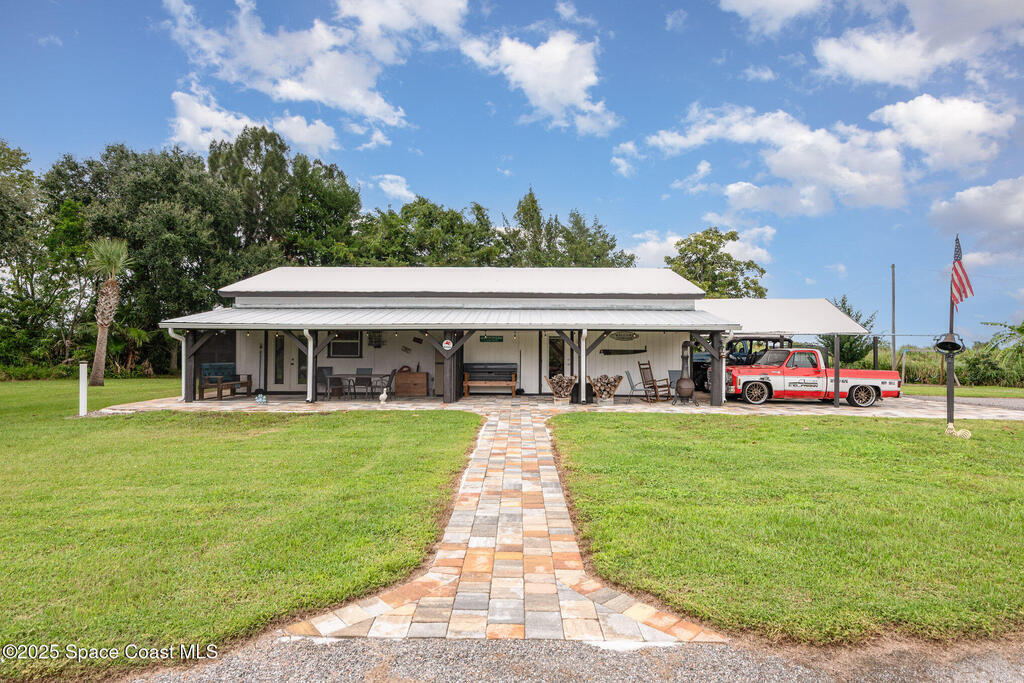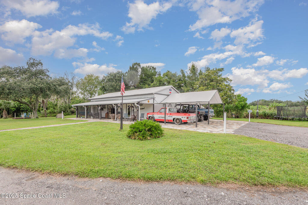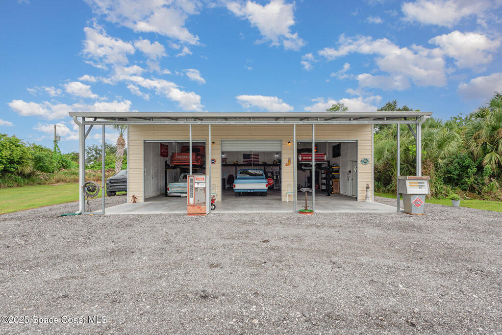 Welcome to your 2.5-acre country retreat on a paved road featuring a custom remodeled 3 bedroom 2 bath barndominium-style home with 1, 152 SF of living area, two porches totaling 849 SF, inside laundry, and a closed-cell foam roof installed in 2022 for energy efficiency and durability; the property also boasts a 30'x40' insulated metal workshop with a 10'x40' lean-to, two 4-post car lifts, three 10' roll-up doors, loft storage, power, and TV making it the ultimate car enthusiast's man cave, plus a 12'x30' shed with roll-up, a 20'x30' carport, three additional canopy structures, an RV hookup, outdoor shower, and a 4-wheeler track/trails winding through the acreage; zoned AU so livestock is welcome, enhanced with paver decks and walkways, and the seller will even leave behind vintage gas pumps, yard decor including a classic truck and tractor with an acceptable offer. This is more than just a home; it's a turnkey lifestyle package for country living, hobby farming, hot rodding, & fun.