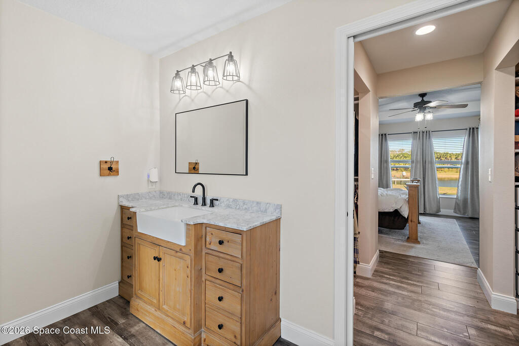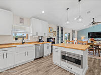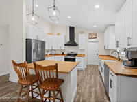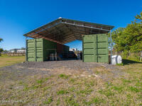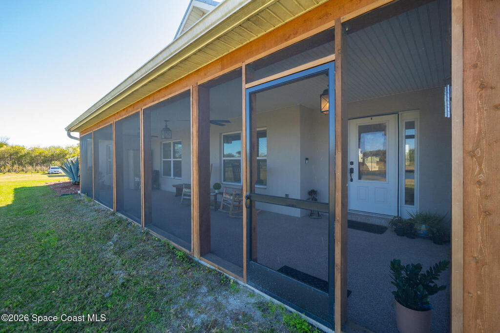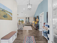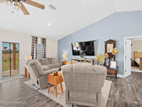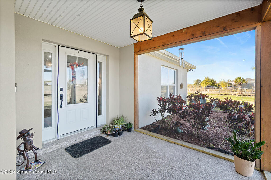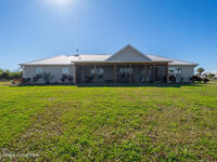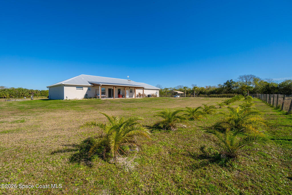 This 2020-built, 4-bed, 2-bath home sits on 3.18 tranquil acres! Enter through the automatic gate into your fully-fenced paradise featuring luxury vinyl plank flooring and an open floor plan. The chef's kitchen showcases an island with built-in microwave drawer, pantry, coffee bar, and dual reverse osmosis systems for purified water. The flex room includes built-in shelving and Murphy bed--perfect for guests or a home office. The primary offers his and hers walk-in closets, dual vanities, and an oversized shower. A metal roof and energy-efficient impact-resistant doors and windows ensure lasting comfort and peace of mind. Outside, enjoy painted porches overlooking your stocked fishing pond with dock. Separate irrigation for year-round gardening, and a utility shed with internal water system enable true homestead living. A 2-car epoxy-floored garage and a carport provides plenty of covered parking for your RV or boat. Don't miss out on your dream retreat!