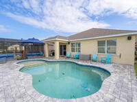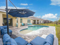 Welcome to the primer Indian River Preserve golf course community! This home has 1772 sqft with 3 bedrooms, 2 bathrooms, and a 2 car garage. The inside features stainless steel appliances, custom subway tile backsplash in the kitchen, laminate flooring in the living/dining area, and an oversized master bedroom. The outside features a 2024 saltwater pool with a paver deck, metal fenced in backyard, outdoor sound system, and ''Govee'' seasonal lighting. You can enjoy everything this community has to offer from the golf course, walking paths, and club house.