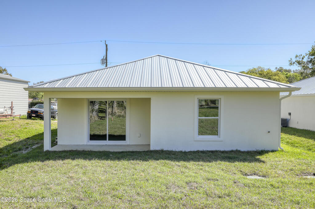 Style, quality, and thoughtful design come together beautifully in this heavily upgraded brand new home. From the striking board and batten stucco front and standing seam metal roof with plywood decking to the carefully selected interior finishes, every detail was chosen with today's buyer in mind. The open living space features a stunning coffered ceiling and flows seamlessly into a designer kitchen complete with Level 2 quartz countertops, white cabinetry, subway tile backsplash, GE appliances, and flooring and tile selections from Floor & Decor. The spacious primary suite includes a large walk-in closet and a beautifully finished bath with dual sinks and a fresh, modern look. With covered front and rear porches with tongue & groove ceilings, an indoor laundry room, and a clean, inviting layout, this home offers both everyday comfort and polished style. Every door and window is impact rated and water softeners are included as well! Owner is a LREA.