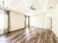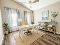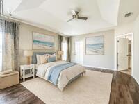 Step inside this beautifully maintained home and be greeted by a dramatic entryway, soaring ceilings, and an abundance of natural light that sets the tone for the entire space. With four generously sized bedrooms and three full bathrooms, the home offers flexibility for modern living. The front bedroom makes an ideal home office, guest suite, or creative retreat. The primary suite is thoughtfully designed with dual vanities, a relaxing garden tub, and a separate walk-in shower. Throughout the home, tile and laminate flooring create a seamless flow, while light cabinetry paired with granite countertops adds timeless style.The open-concept layout is perfect for both casual living and entertaining, providing a welcoming environment to gather with family and friends.Located just minutes from local restaurants, shopping, pristine beaches, and military bases. Lawn maintenance provided by landlord.First, SD, App fees, Lease prep, move out, cleaning fee. Virtual Staging Used.
