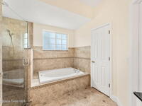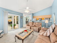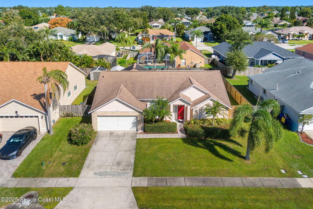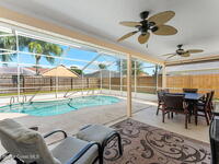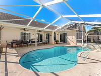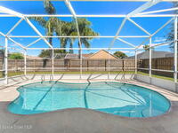 Full of natural light and easy Florida charm, this Rockledge pool home was designed for comfortable living. A thoughtful split floor plan balances connection and privacy, while vaulted ceilings and soft tones create an airy, welcoming feel. The kitchen opens to a cheerful breakfast nook and dining area overlooking the pool, ideal for both quiet mornings and easy entertaining. The primary suite offers direct lanai access, walk in closet, and a spacious bath with soaking tub and walk-in shower. Two guest bedrooms and a full bath provide flexibility for family or visitors. Outside, a screened patio, sparkling pool, and large fenced backyard invite everyday relaxation. With a roof replaced in 2019, community natural gas, and space that truly lives well, this home blends comfort with a touch of coastal personality.