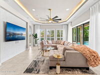 Custom-built in the coveted gated community of Charolais Estates, this Viera residence delivers both style and substance. Inside, upgraded finishes and a floor plan designed for beauty and function set the stage for modern living, highlighted by a primary suite w/ dual walk-in closets, a spa-inspired bath w/ soaking tub, and a walk-in shower. Smart switches throughout plus a whole-house water filter & descaler add modern convenience. Enjoy a 5.1 surround system in the living room, built-in speakers in the patio/pool, and built-in speakers in the primary bath + guest bath. Outdoors, the lanai becomes an entertainer's haven w/ a sparkling saltwater pool and full summer kitchen. Beyond the gates, Viera offers The Avenues, dining, entertainment, golf, and nature preserves minutes away, plus top schools, medical facilities, parks, and easy access to Orlando, beaches, and Cape Canaveral.