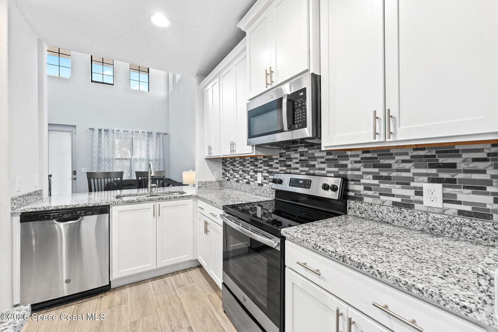 This townhome (End Unit!) hits different - bold, smart, and built for living! 3 beds, 2.5 baths, and a 1-car garage bring the space, while granite countertops and a breakfast bar give the kitchen serious style points. The primary suite lives downstairs with sliders spilling out to a covered, screened patio...your everyday escape for fresh air, slow mornings, and late-night unwinding. Upstairs, two guest rooms offer privacy and smart layout flow, with one opening to a breezy balcony perfect for sunset resets. Tile & carpet throughout, central vacuum, storm shutters, a security system, and a smart doorbell mean effortless, secure living. Plus, a smart thermostat keeps comfort dialed in year-round. Out back, a paved patio with metal fencing sets the stage for chilling, grilling, and good-vibe nights. Minutes from Viera's top shopping and dining - because convenience should feel this cool!
