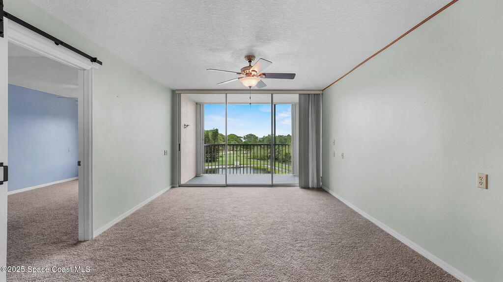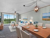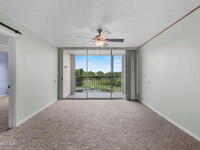 Quiet 4th-floor 2-bedroom, 2-bath condo with detached 1-car garage in the desirable 55+ Carmel Community. Bright unit features hurricane-impact windows and shutters, new flooring, quartz kitchen, stainless steel appliances, laundry hookups inside unit, nearby trash chute, and a screened balcony with peaceful pond views. Enjoy truly low-maintenance living with a most-inclusive HOA covering water, sewer, trash, cable, internet, Disney+, insurance, lawn care, pest control, and exterior maintenance. Community offers a clubhouse, pool, fitness center, library, billiards, and social activities. Milestone inspections complete and elevators updated. Convenient to Viera shopping, dining, medical facilities, trails, beaches, I-95, and less than an hour to Orlando.