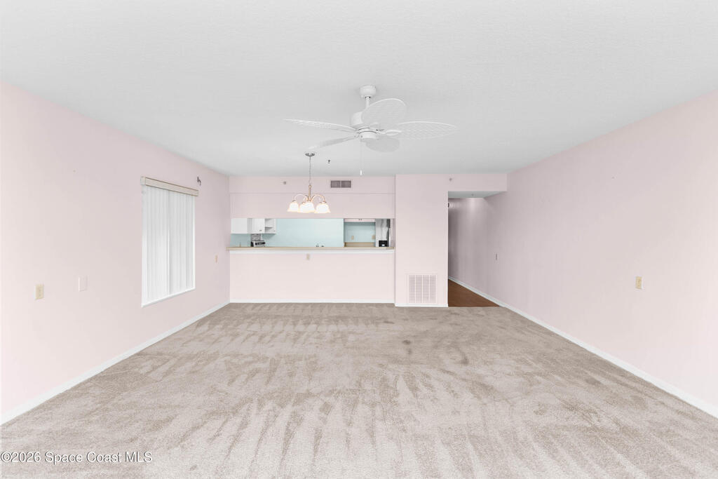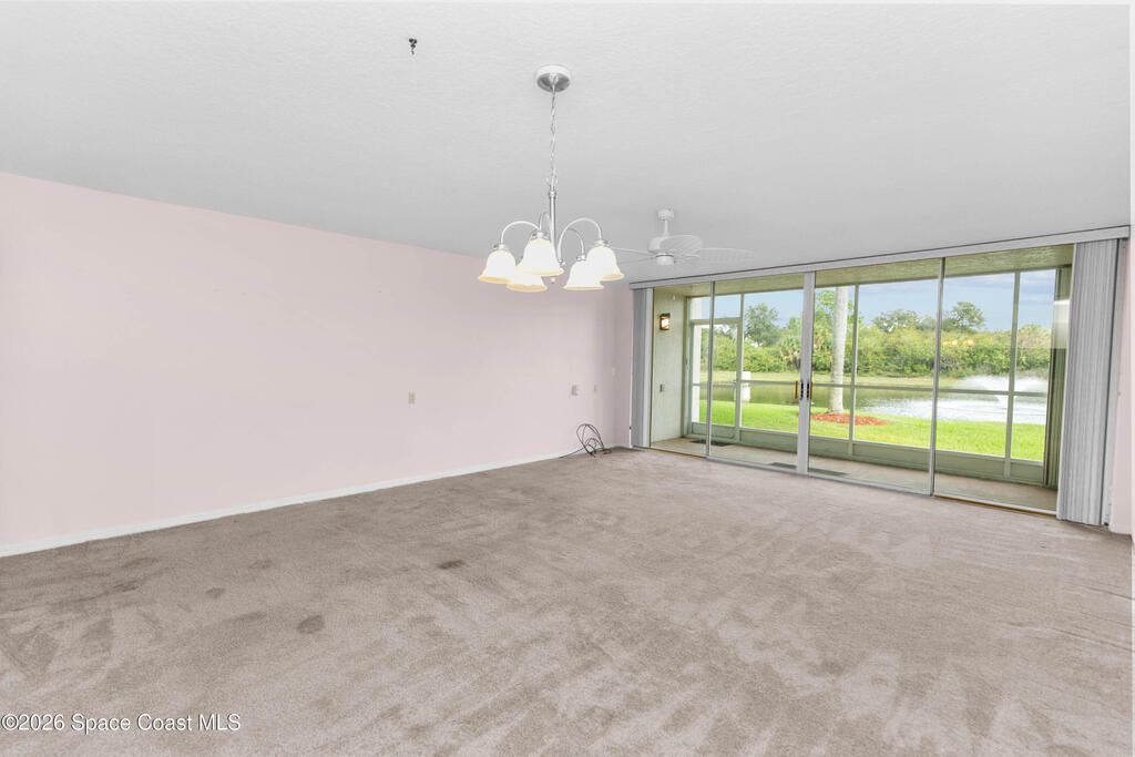Highly desired FIRST floor condo in the Carmel Retirement Community. This spacious layout provides 2 bedrooms and 2 full bathrooms, an open-concept dining and living space, in-unit laundry, and so much more! Enjoy a worry-free lifestyle as the HOA covers water, sewer, trash, cable, internet, insurance, lawn care, pest control, exterior maintenance, pool and clubhouse with fitness center. The 1 car garage provides ample storage space. Hurricane shutters provide peace of mind. Don't miss your opportunity to own a truly serene condo, schedule your showing today.