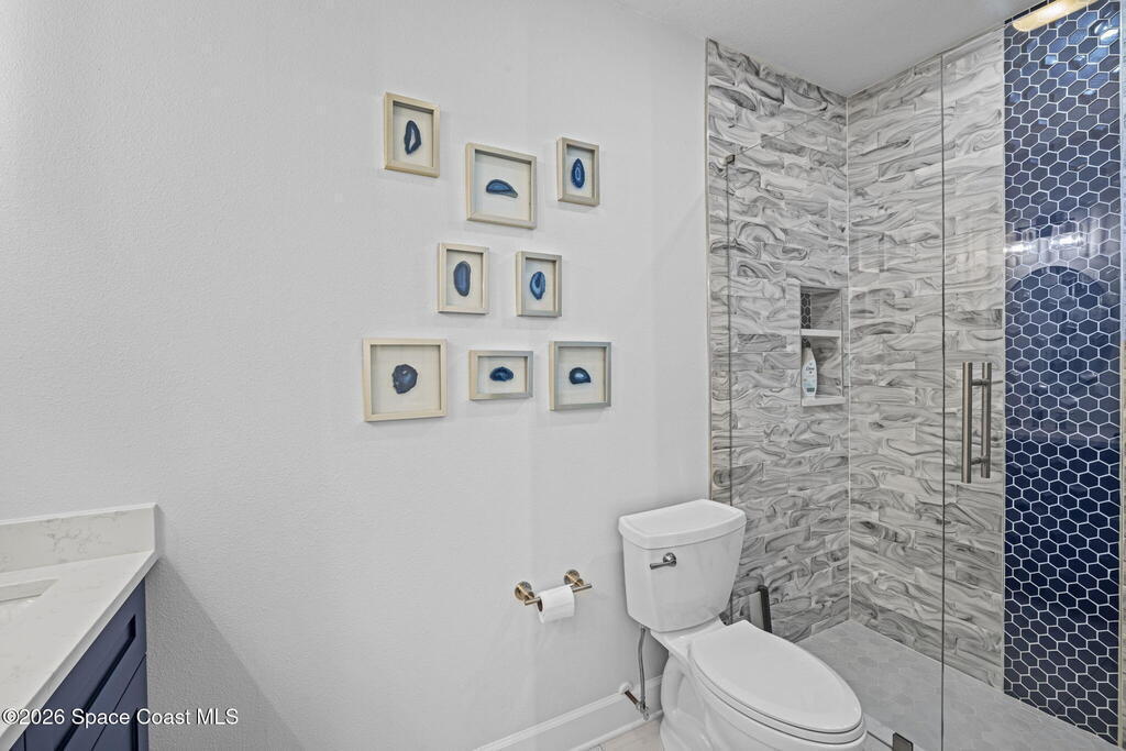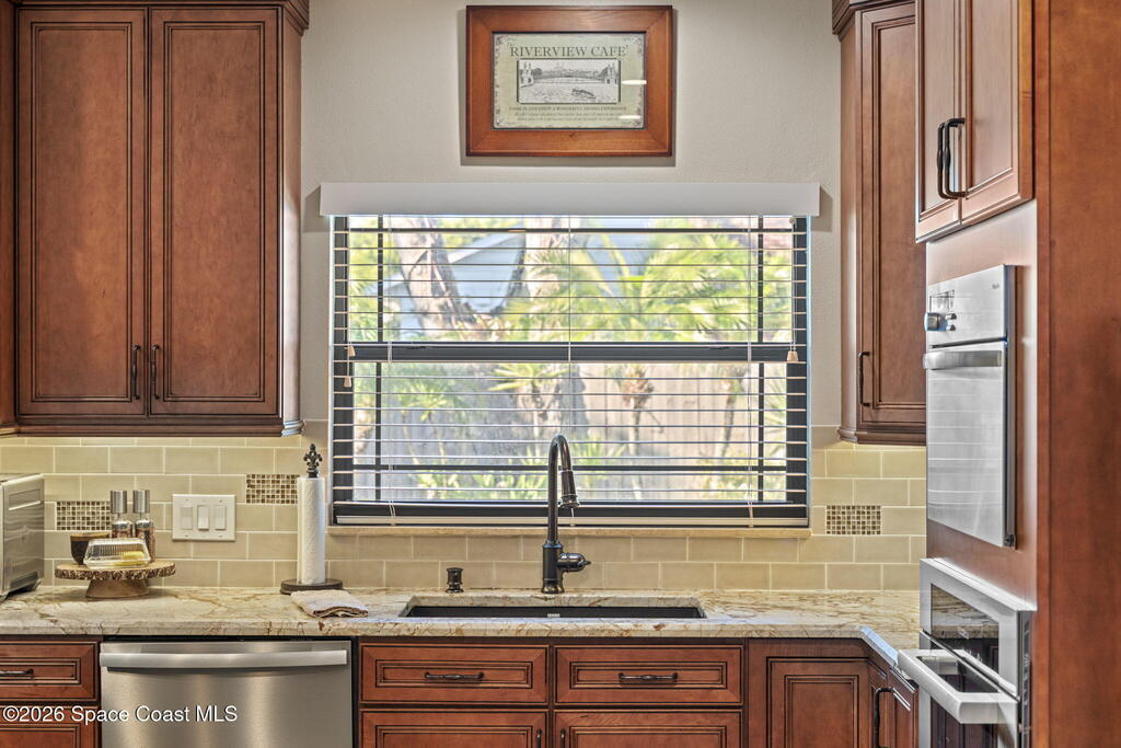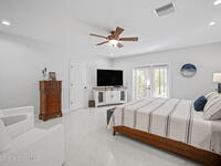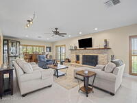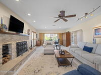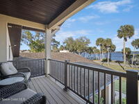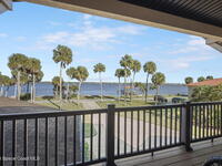 Located on Rockledge Drive, this exceptional riverfront home offers 149 feet of direct Indian River frontage. The oversized .74-acre lot provides rare privacy. The CBS home features two wood-burning fireplaces and dual primary suites, including an upper-level primary retreat with river views, private balcony, kitchenette, custom closets, and engineered hardwood flooring throughout the upper level. A main-level primary suite offers flexibility for guests or multigenerational living.The gourmet kitchen showcases custom Hickory cabinetry, Quartzite countertops, designer tile from Spain, and premium appliances. Recent upgrades include a new AC and tankless water heater (2025), updated windows and doors, renovated baths, Italian porcelain tile, and a custom Oak staircase.Outdoor living features a screened saltwater pool and hot tub, irrigation, and extra garage spaces.