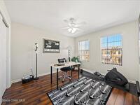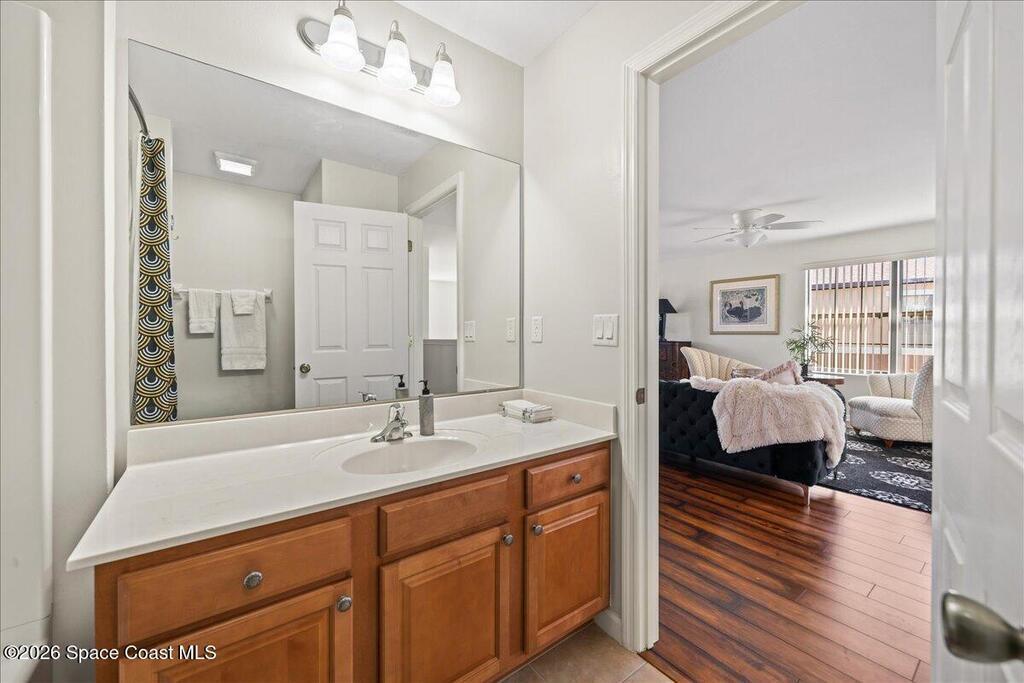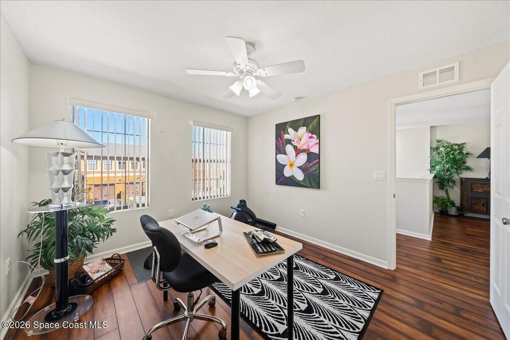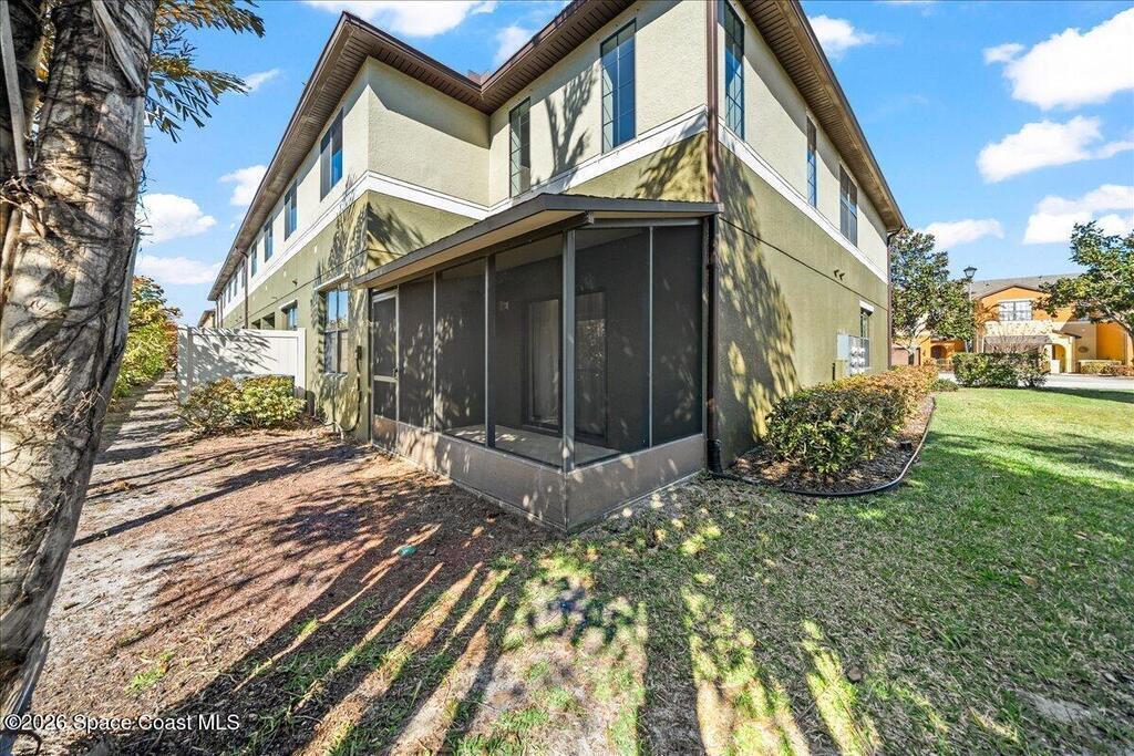 Ready for your 'right-size'' home. This immaculate, 1, 975 sq. ft. end-unit townhome offers the perfect blend of single-story convenience with two-story space. The heart of this home is the spacious Ground Floor Master Suite, allowing you to age in place comfortably without sacrificing privacy. The open, airy floor plan features soaring 2-story ceilings, neutral tile, and a private screened porch perfect for your morning coffee. The kitchen is ready for entertaining with 42'' cabinets, granite counters and a breakfast bar. Upstairs, you'll find a beautiful Java Teak staircase leading to a massive loft-style living area. It is the ideal ''Flex Space''--use it as a second TV room, a grand-kids' play zone, or a dedicated home office. Two additional bedrooms and a full bath create a private retreat for visitors, so you stay downstairs while they have their own space up top! Stop worrying about bills and maintenance! The $452/mo HOA fee is a powerhouse of value.