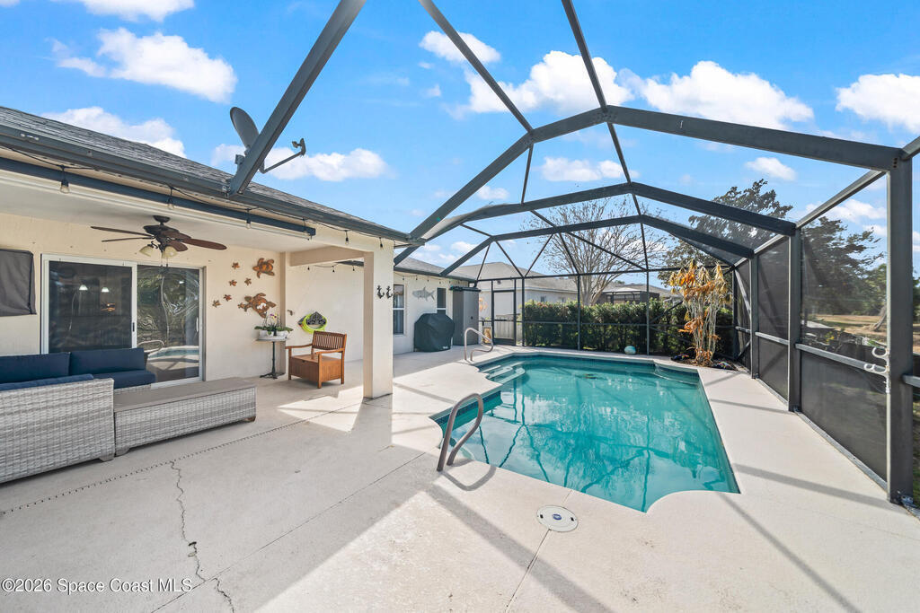 with Welcome home to this beautifully maintained 4-bedroom, 2-bath residence that perfectly blends comfort, functionality, and lifestyle. Designed for everyday living and entertaining, the home features a separate dining area, a well-appointed kitchen with granite countertops, stainless steel appliances, and a walk-in pantry, plus a convenient indoor laundry room. Step outside to your private backyard oasis with a sparkling pool, spacious yard, and a secluded preserve backdrop that creates a true retreat. Wine enthusiasts will love the mature grape vines, adding unique charm rarely found in residential settings. The peaceful setting offers privacy and an ideal space for relaxing or hosting gatherings. Located in a desirable community with a pool and clubhouse, this home also offers peace of mind with a newer roof (2019) and HVAC system (2020). Ideally situated near shopping, dining and everyday conveniences, this property delivers exceptional value and Florida living at its best.