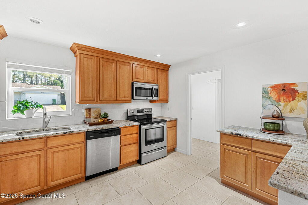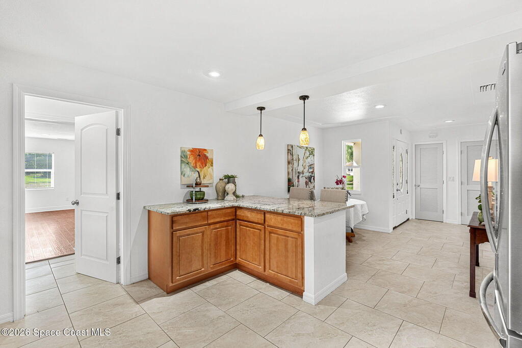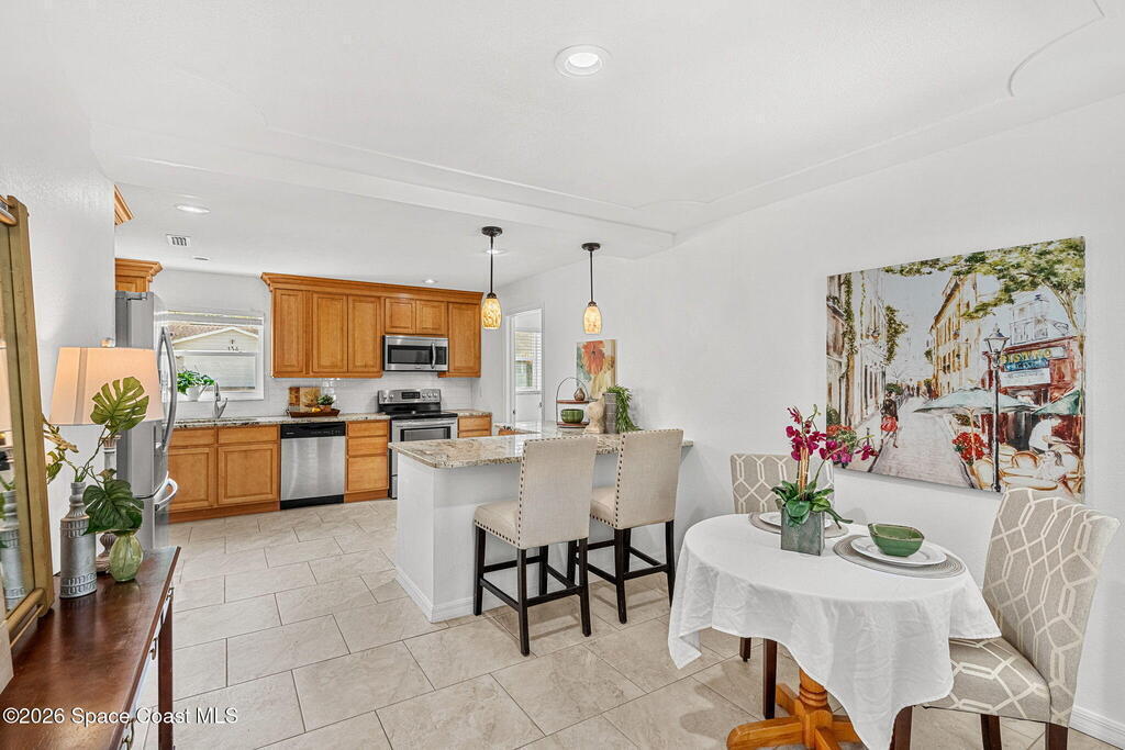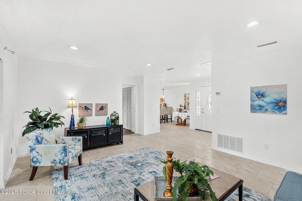 Nestled in the highly desirable Oakledge Park area off Rockledge Drive, this beautifully updated residence offers over 2, 700 square feet of thoughtfully designed living space with 5 bedrooms--perfect for a growing family seeking both flexibility and function. From the moment you arrive, you'll appreciate the care and quality poured into this home, with major updates completed over the past seven years including a new roof, impact windows and doors, A/C system, aerobic septic system, and fresh interior and exterior paint. Inside, the heart of the home is a stunning open kitchen that flows seamlessly into the great room, creating an ideal space for everyday living and entertaining. The addition of a butler's pantry elevates both convenience and style, offering extra storage and prep space that today's buyers crave. Luxury vinyl plank and tile flooring run throughout, combining durability with a clean, modern aesthetic. One of the standout features is the versatile layout, including a