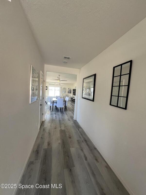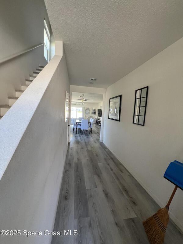 Immaculate two-story on a lake-view corner lot with laminate flooring throughout the entire first floor. Bright, open-concept living flows to an island-ready kitchen and sliders overlooking peaceful water views. Spacious bedrooms, private primary suite, inside laundry, and an oversized 2-car garage. The homesite borders an expansive open green space for extra privacy and elbow room (buyer to verify no-build/common-area status). Minutes to Viera shopping, dining, and entertainment, with quick access to I-95, Cocoa Village, the Indian River, and Florida's beaches--easy commute to Orlando attractions. Enjoy modern construction, low maintenance, and tranquil views in a convenient Rockledge location. Move-in ready!