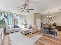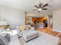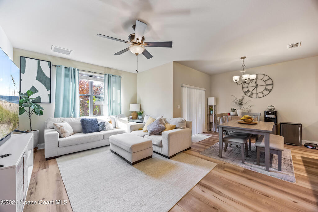 Move-in ready 3-bedroom, 2.5-bathroom townhouse in the highly desirable Meadow Pointe community. Roof 2023 and AC 2018. This townhome offers just under 1, 500 square feet of living space. The kitchen features a large island, solid wood cabinets, and ample storage, seamlessly flowing into the dining and living areas. Laminate flooring runs throughout the lower level, while the upstairs features carpet with tile in the bathrooms and laundry room.The spacious primary suite includes two large walk-in closets and an en-suite bathroom with a double sink. The laundry room is conveniently located upstairs, and the washer and dryer are included! Additional features include an attached one-car garage and storm shutters for added protection.The community offers a sparkling pool, and the HOA covers cable, internet, lawn care, exterior building maintenance, roof replacement, common area insurance, and pest control. Located just minutes from shopping, restaurants and other local amenities.