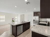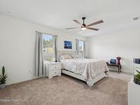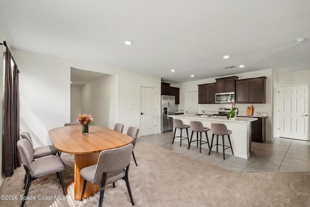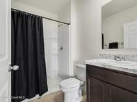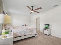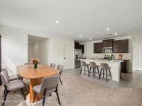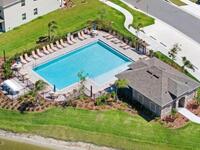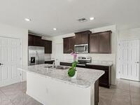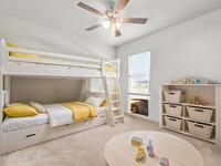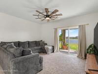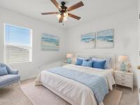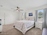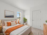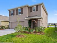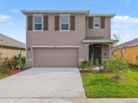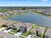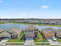 Welcome to your lakefront home in Harvest Landing--where space, flexibility, and location come together. This 5-bedroom, 3-bath home offers a highly desirable layout with a first-floor bedroom and full bath, perfect for guests or multi-generational living. Built with solid concrete block construction, the open-concept design features a bright kitchen overlooking expansive living and dining areas ideal for gatherings. Upstairs, the oversized primary suite easily fits a king bed and includes a walk-in closet and double vanity bath. Three additional bedrooms provide room for everyone. Step outside and unwind with peaceful water views from your backyard. Smart Home features, ceiling fans, washer and dryer included, plus gutters already in place. Enjoy a community pool, parks, and nature trail. (Note: Some photos have been virtually staged to showcase design inspiration and spatial possibilities - helping you imagine how this beautiful home can be styled to suit your taste.)