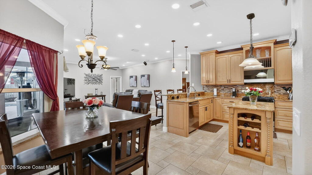 Welcome to your own slice of paradise in the desirable Chelsea Park community of Rockledge, Florida--conveniently close to the Space Coast beaches and all the excitement of the area!This stunning 4-bedroom, 3-bath single-family home boasts 2, 229 square feet of thoughtfully designed living space on a spacious quarter-acre lot, complete with a three-car garage--plenty of room for vehicles, storage, or even a workshop.Step inside to discover modern upgrades and Florida-friendly features everywhere you look. The gourmet kitchen shines with brand-new appliances, sleek granite countertops, and beautiful custom cabinetry--perfect for whipping up meals or hosting friends. Fresh laminated flooring flows throughout the home, complemented by recessed lighting and elegant crown molding in the dining and living rooms for that polished, upscale feel. Read more...