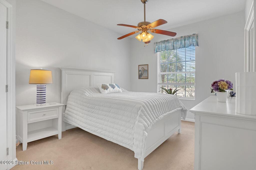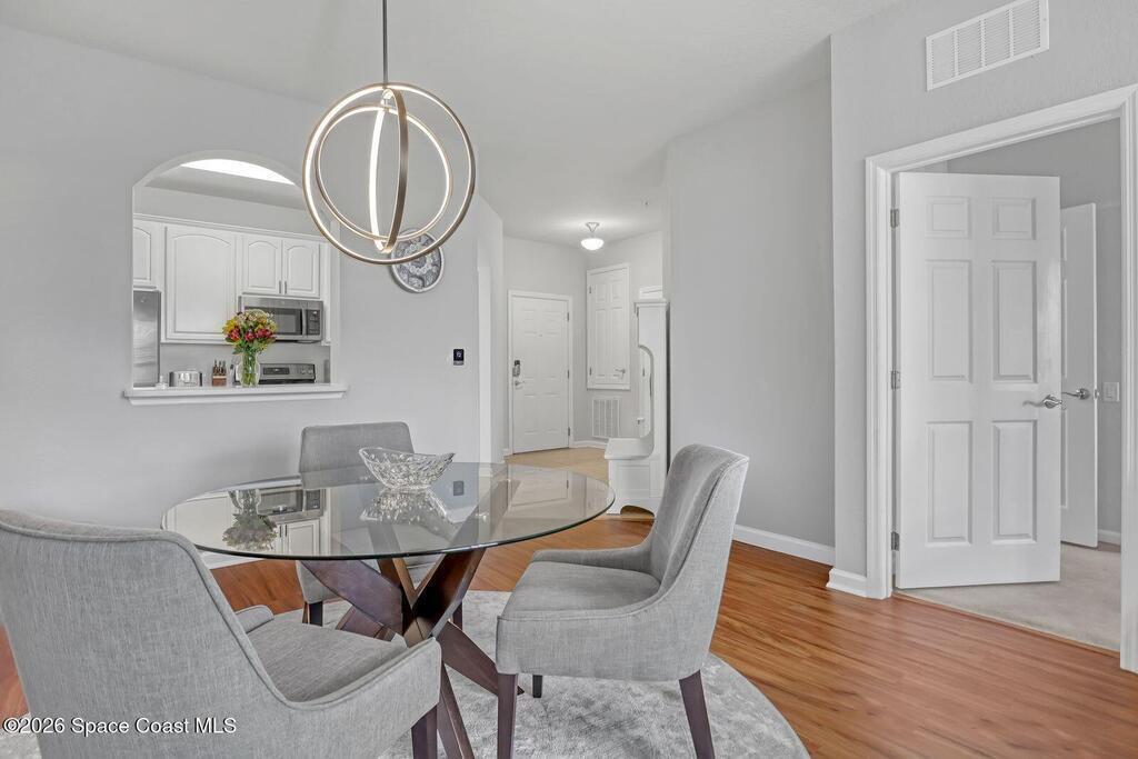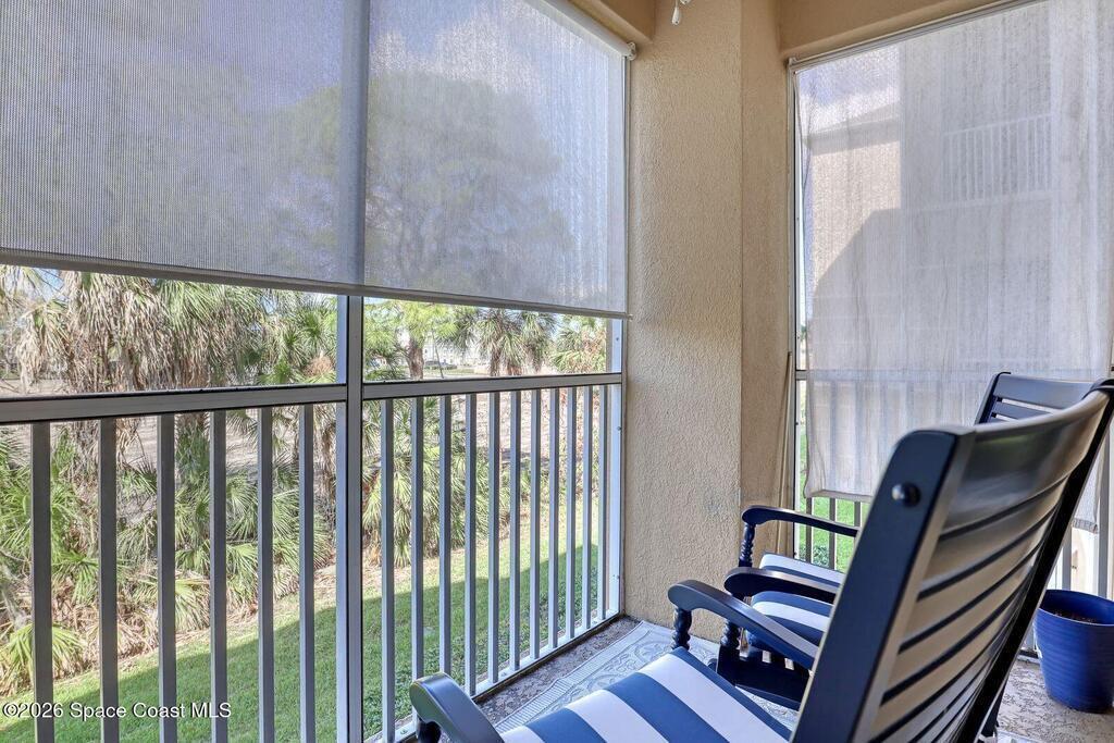 A GORGEOUS, TOTALLY UPDATED END UNIT CONDO OFFERING STYLE, COMFORT & PRIVACY! This light-filled home features an open layout, modern finishes, and a beautifully redesigned kitchen with stainless appliances, sleek white cabinetry w/crown molding and premium surfaces. Enjoy in unit laundry, new HVAC and a private garage w/new motor! The spacious living area flows to a balcony perfect for relaxing! The primary suite includes a refreshed bath, generous closet space, while the split plan provides ideal guest privacy. Enjoy new flooring, updated lighting, fresh paint, and meticulous care throughout. This well-kept community offers a huge sparkling pool, plenty of outdoor space to lounge, gym, and clubhouse! Close to Golfing, Shopping, Restaurants, Entertainment, Fishing, Boating, Beaches, KSC, Port Canaveral Cruises, Hospitals, and only 40 min. to theme parks and OIA. Move-in ready and truly stunning--an exceptional find!