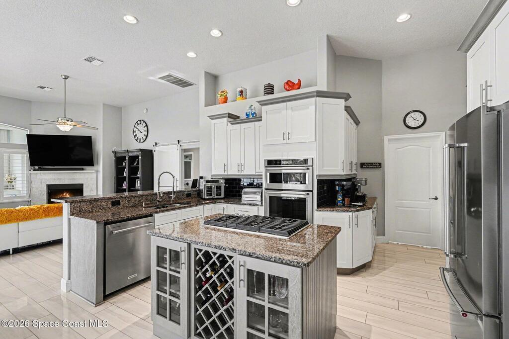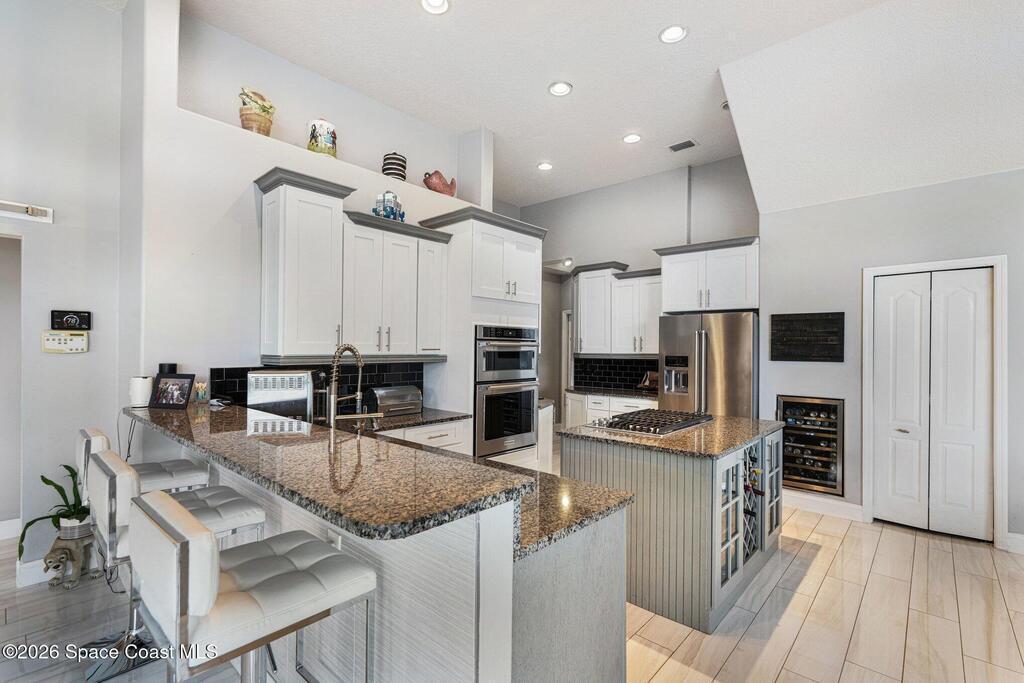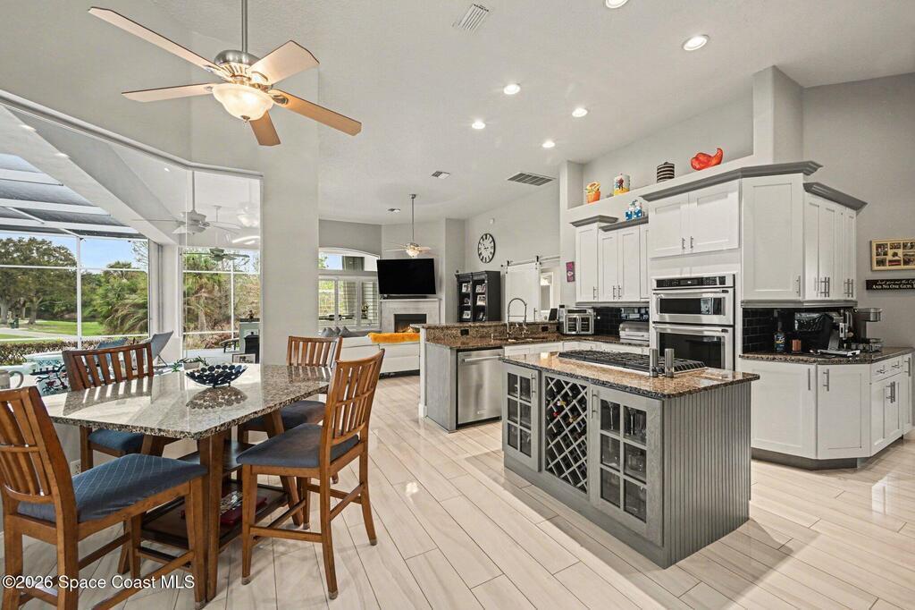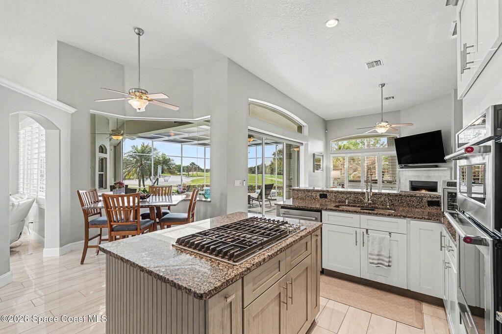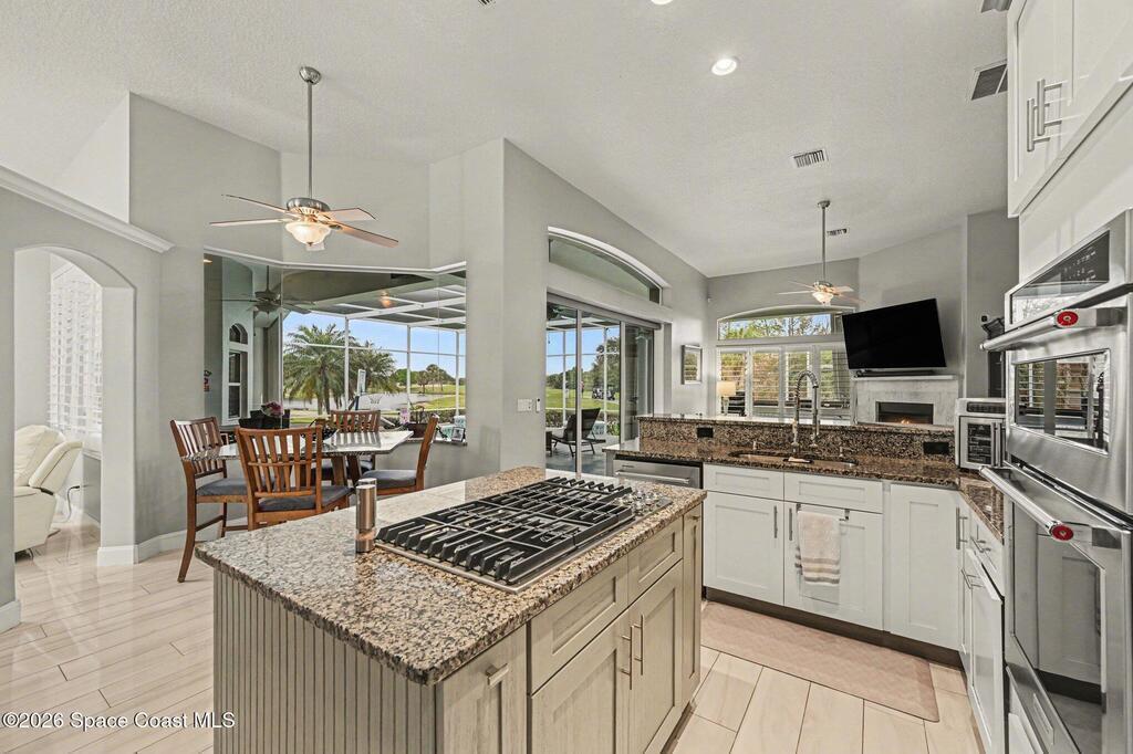 Spectacular Lot - BEST in Viera East | Golf, Lake & Preserve ViewsExperience unmatched privacy and breathtaking natural beauty in this exceptional, fully furnished showpiece home. Perfectly positioned on one of the best lots in Viera East, the property is surrounded by miles of scenic golf, lake, and preserve views--creating a serene and private retreat.This completely remodeled residence captures stunning sunsets and expansive vistas from nearly every angle. Designed for both luxury and comfort, the open-concept floor plan seamlessly blends indoor and outdoor living.The heart of the home is a beautifully redesigned gourmet kitchen, featuring upgraded stainless steel appliances, a gas cooktop, an oversized center island, and high-end finishes--perfect for entertaining or everyday living.Step outside through large sliding glass doors to your private, resort-style oasis. The extra-large lanai boasts a sparkling pool, summer kitchen, and ample space for relaxing or hosting guests,