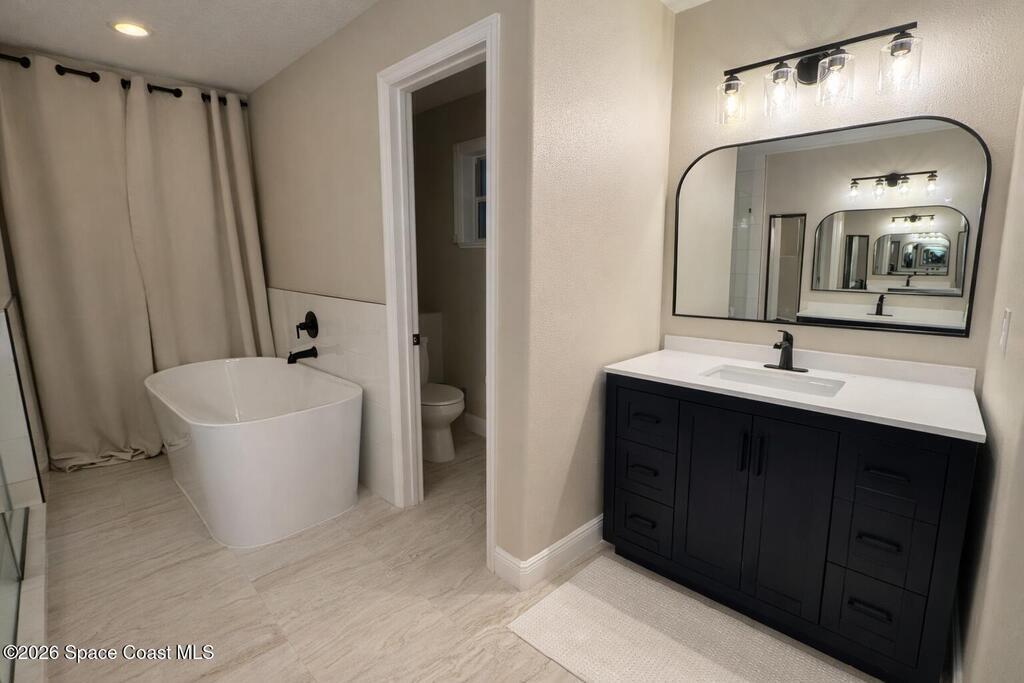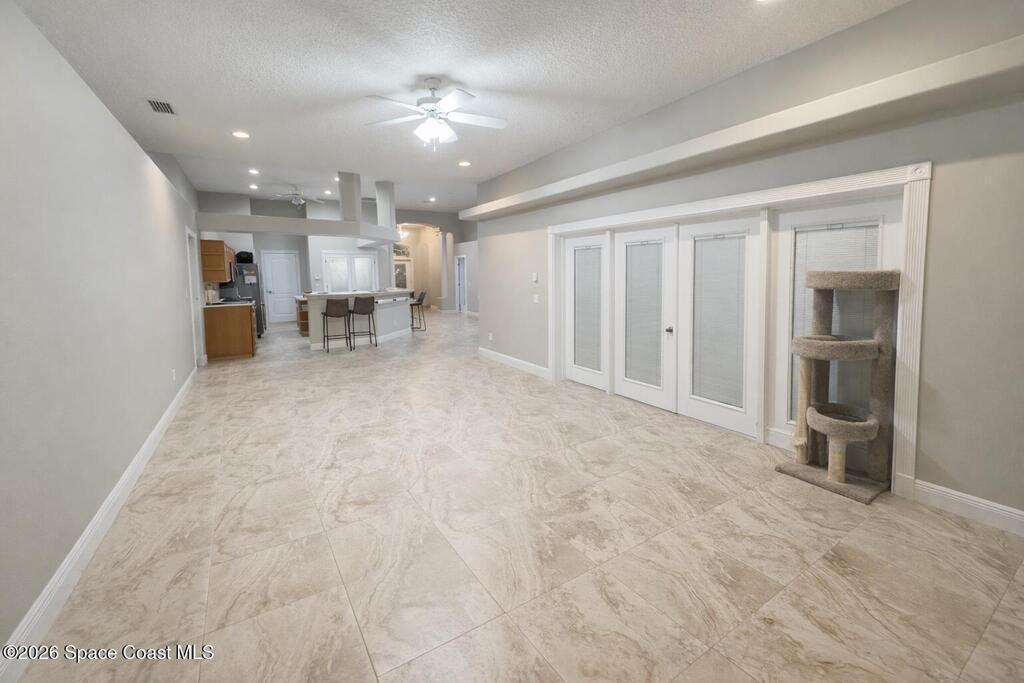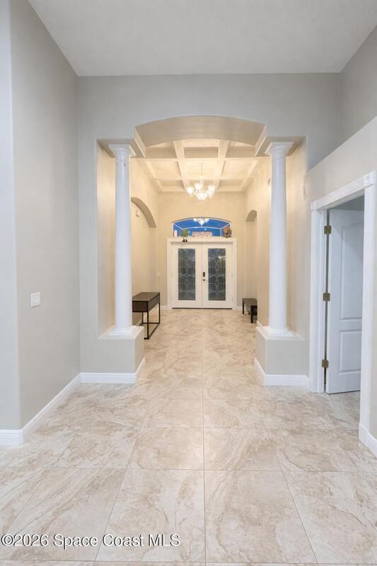 Beautiful 4-bedroom, 3-bath lakefront home located in the highly desirable Viera East community. This spacious home features a thoughtfully designed split floor plan & a large family room perfect for entertaining.The primary suite offers tray ceilings, two walk-in closets, and French doors that open to the screened lanai. Completely renovated primary bathroom includes a oversized soaking tub, dual vanities, & a spacious layout designed for comfort and style.The kitchen is well appointed with Corian countertops, stainless steel appliances, a center island, and a double pantry, providing plenty of storage. The interior of the home has also been recently painted, giving it a fresh, move-in-ready feel.Bedrooms two & three share a convenient Jack-and-Jill bathroom, while the fourth bedroom features its own private bath that also functions as a cabana bath for easy pool access.Step outside to enjoy the beautiful screened lanai with a pool overlooking the lake.
