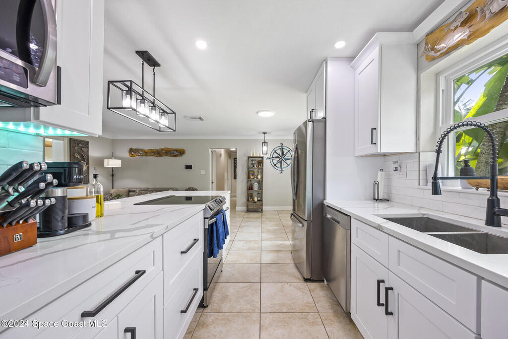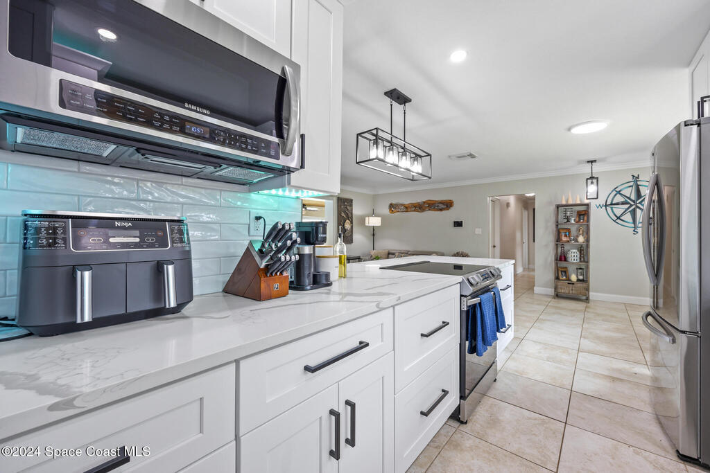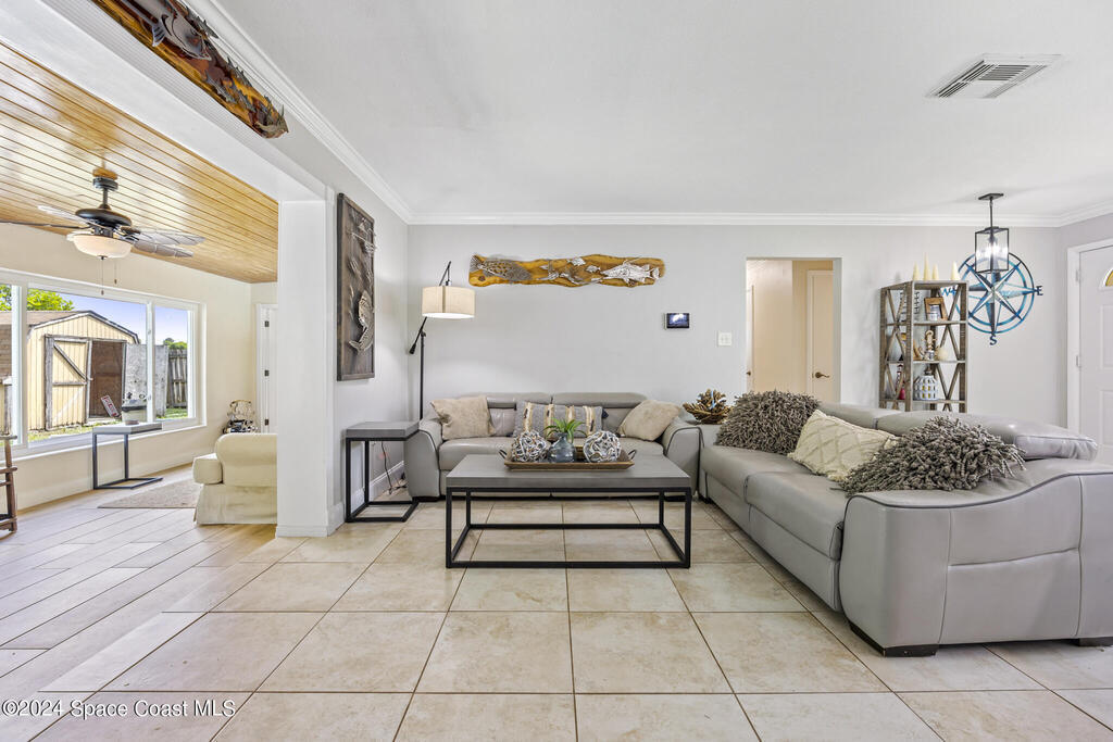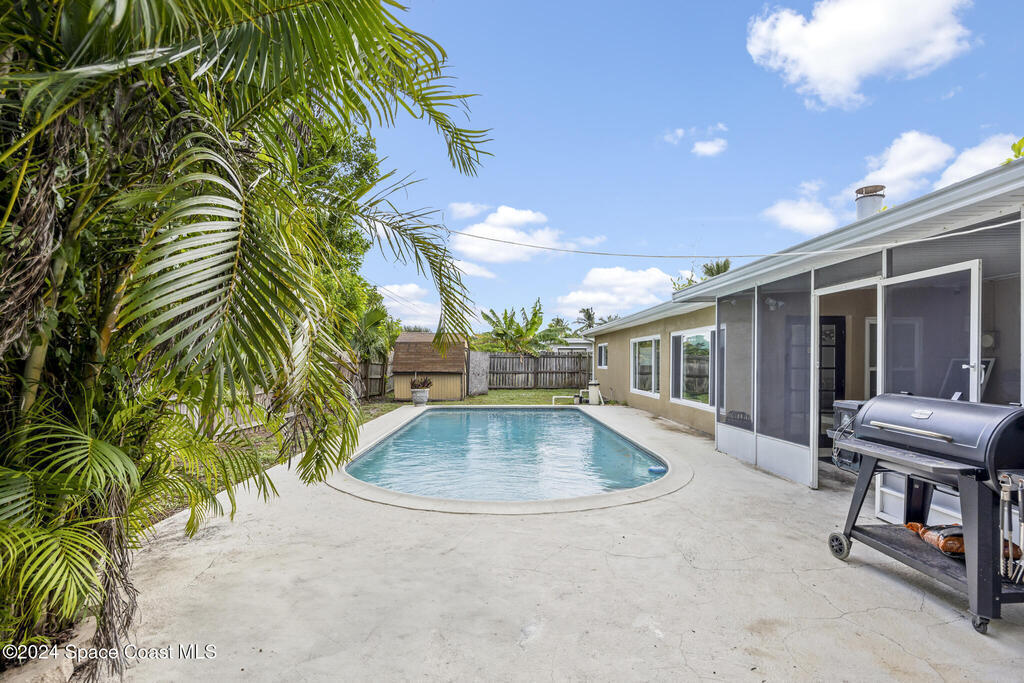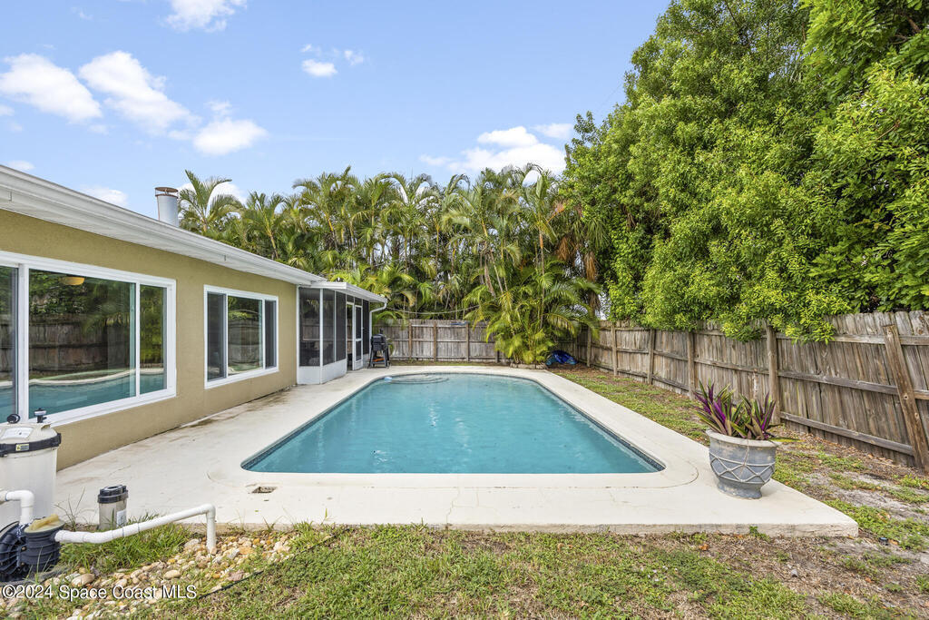 Welcome to your dream beachside retreat! This stunning 4-bedroom, 2-bath pool home has been thoughtfully updated and is ready for you to enjoy the best of Florida living. With a brand-new roof (2024), hurricane-rated impact windows for added peace of mind, and custom tropical landscaping, this home is a true gem. Step inside and discover a beautifully renovated space that blends modern elegance with beachside charm. The newly remodeled kitchen (2023) features sleek quartz countertops, stylish cabinets, and stainless steel Samsung appliances--a chef's dream. The open floor plan seamlessly connects the living areas, making it perfect for entertaining. New light fixtures (2023) and updated bathrooms with quartz vanities complete the fresh, luxurious feel.Outside, your private oasis awaits! Relax by the pool or enjoy the fully fenced backyard, perfect for gatherings. Plus, there's ample space for an RV or a large boat, all in a quiet, serene neighborhood.