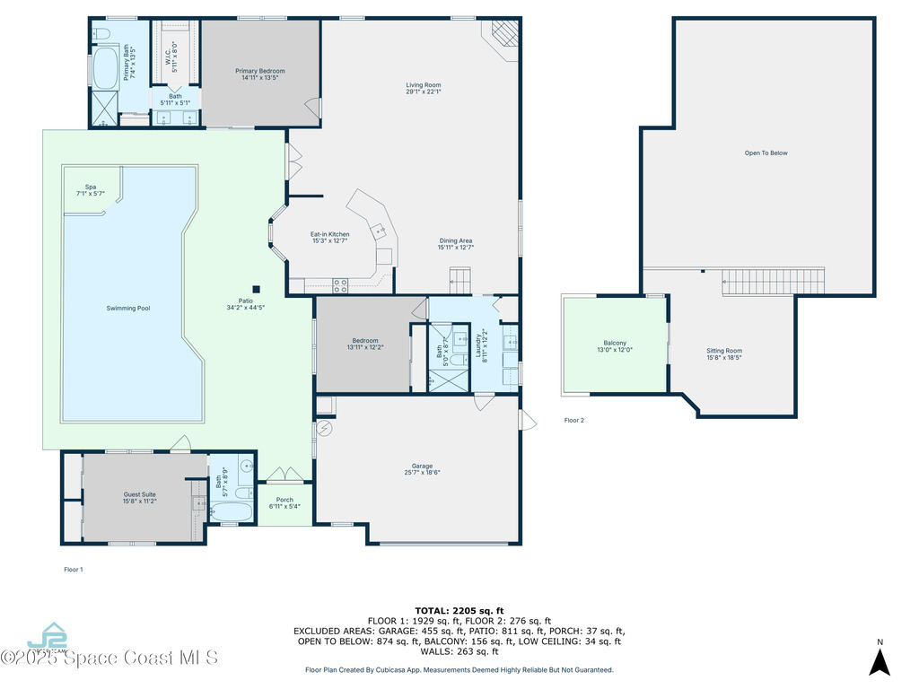 MOTIVATED SELLER! Just 1.5 blocks from the beach, this beautifully maintained 3-bed, 3-bath home offers the perfect blend of comfort & coastal charm. A 2nd-story loft with its own balcony--can easily be enclosed to create a 4th bedroom, ideal for growing families. The detached 1-bed/1-bath efficiency bungalow adds flexibility for multi-gen living or a private home office. Step into the serene courtyard featuring a large pool & spa, perfect for relaxing or entertaining. Inside, you'll find vaulted ceilings, open floor plan, & a primary suite with patio access, a walk-in closet, jetted tub, & separate shower. Built in 2000 w/concrete block construction, this home boasts recent upgrades: 2023 roof, 2024 A/C, & new water heater. Miami-Dade hurricane shutters offer added peace of mind. Located just blocks from top-rated schools, shopping, & dining, this one-owner home is a rare find in Satellite Beach. Whether you're seeking a family home or a second home by the sea, this could be the one!