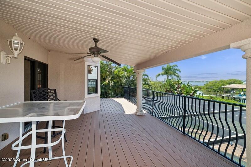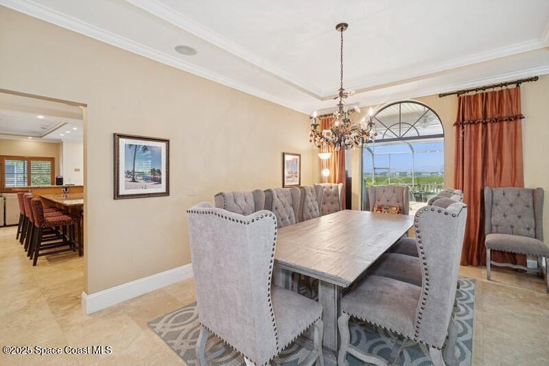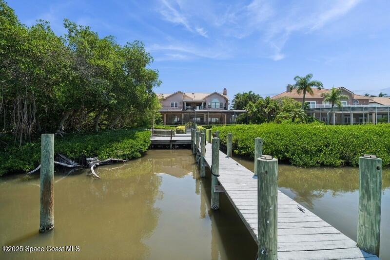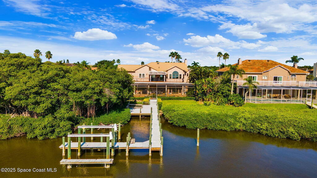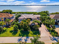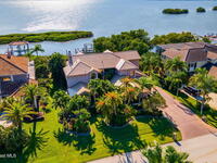 Experience coastal luxury in the exclusive gated community of Tortoise Island. This stunning waterfront estate sits directly on the Banana River with a private dock and heated saltwater pool--perfect for enjoying Florida's sun-soaked lifestyle. With over 4, 900 sq ft of living space, this home features a gourmet kitchen, two fireplaces, a spacious open floor plan, and a downstairs en-suite. Elegant details include travertine floors, tray ceilings, and crown molding. Recent upgrades include a new metal roof (2023), hot water heater (2023), garage door (2022), 2 downstairs HVAC (2023), and upstairs HVAC (2024). Enjoy serene river views from the large, covered patio, ideal for entertaining. Just minutes from the beach, this home is coastal living at its finest. Community amenities include a pool, tennis courts, fitness center, boat dock and slip, and playground. A rare riverfront gem in one of the area's most prestigious neighborhoods.