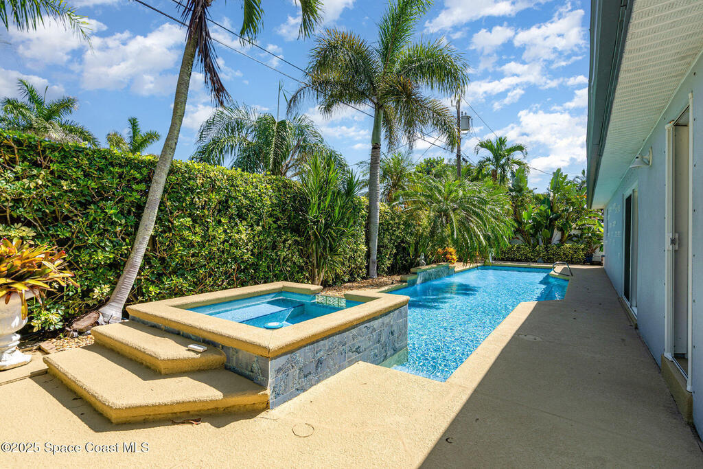 Welcome to your perfect BEACHSIDE RENTAL HOME! Nestled just steps from the sand and surf, this charming 3-bedroom, 2-bath coastal retreat offers the ideal blend of relaxation, comfort, and convenience. The open kitchen with SS appliances and adjoining dining area and spacious living room offer plenty of room to gather and unwind. Outdoors is where this home truly shines. Lounge by your private POOL and gas heated hot tub surrounded by lush landscaping, or rinse off the salt and sand in the outdoor shower after a day at the beach. Enjoy alfresco dining, or simply relax under the stars to the sound of ocean waves in the distance.Located in a quiet, friendly beachside neighborhood, you're just minutes from local shops, dining, and all the coastal activities you love--surfing, paddle boarding, or simply strolling along the shore. Rent includes lawn care, pool maintenance.