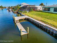 Fully remodeled, Concrete block, Split Floor plan Home on a 95ft Wide Canal! Stop paying thousands of dollars to store your boat. Buy the dock and the house is included! NO HOA & you get to enjoy the Satellite Beach location without the Satellite Beach tax rate as you are in County versus City for property taxes.EVERYTHING has been thoughtfully updated, with Expansion in mind. Add windows and a mini split to the 570 sqft block porch addition, and you've not got well over 2200 sqft of living space. Relax, knowing the money has already been spent adding the new 81-ft corrugated vinyl seawall, 24-ft boat slip w/ composite decking, and a freshly drilled artisan well. The heavy lifting has been handled for you. Move in, add a pool, or don't, and start living the boating, beach life you have imagined.