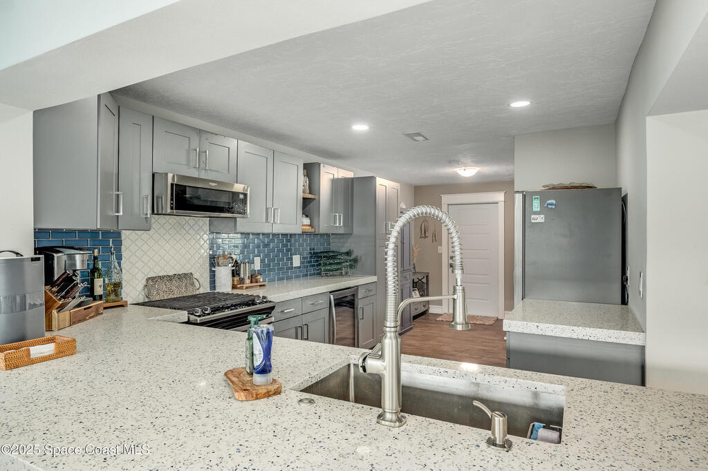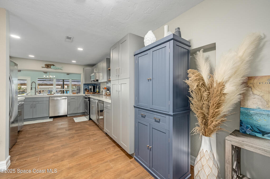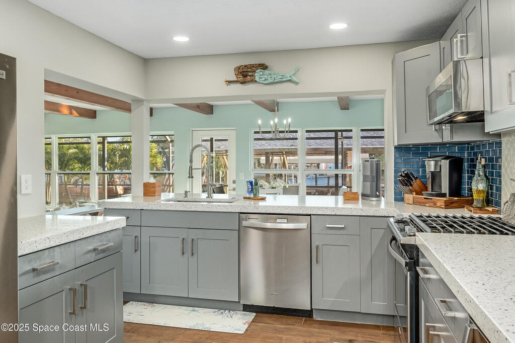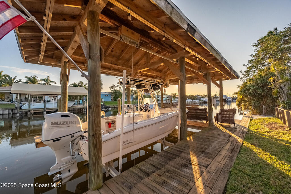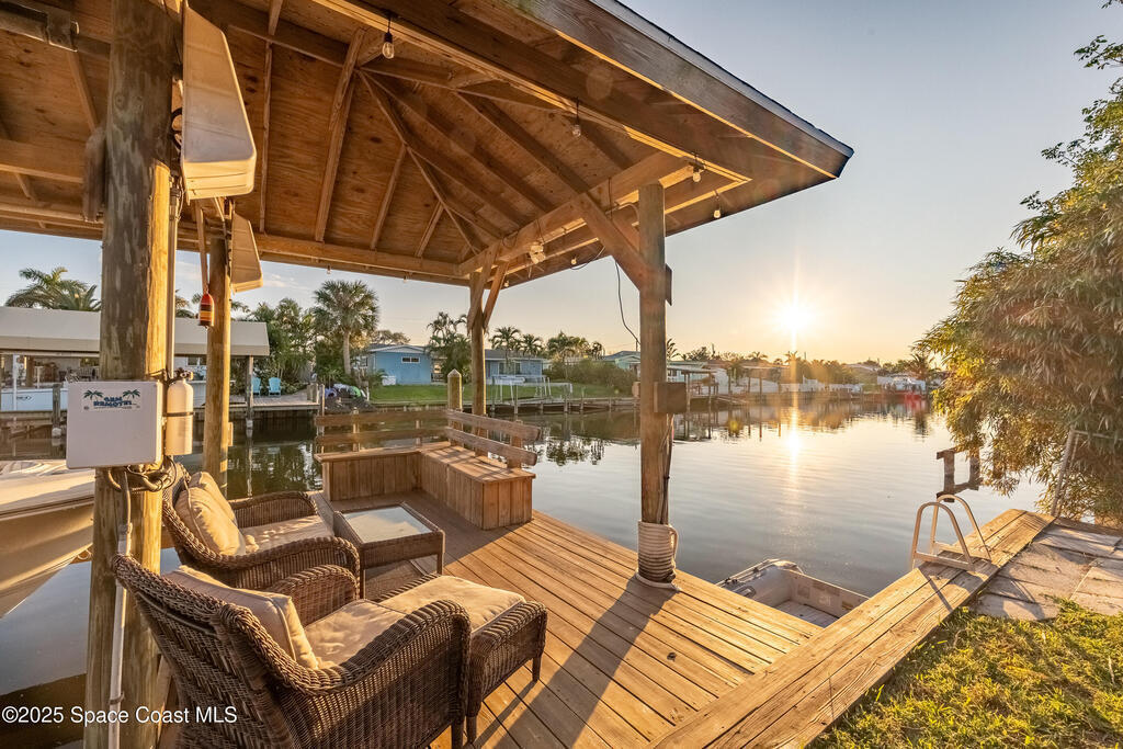 72 HOUR KICK-OUT CLAUSE - MOTIVATED SELLERS - BRING ALL OFFERS!! PLUS SELLERS OFFERING $10, 000 CONCESSION FOR CLOSING COSTS; A WIN-WIN FOR BUYERS!! BOATER'S PARADISE! Enjoy waterfront living with an 10, 000-lb covered boat lift and private dock--perfect for morning coffee or evening sunsets by the water. This fully renovated 3-bedroom, 2-bath pool home blends coastal charm with modern updates. The kitchen features soft-close cabinets, quartz countertops with Curava recycled glass, a gas stove, and a dine-in peninsula ideal for entertaining. Both bathrooms have been tastefully remodeled, and fresh finishes bring elegance throughout. Step outside to your solar-heated saltwater pool, recently refinished with a durable 30-year surface. The open family room with a cozy fireplace and adjacent dining area create an inviting space for relaxing or hosting guests. Live the Florida lifestyle to the fullest!