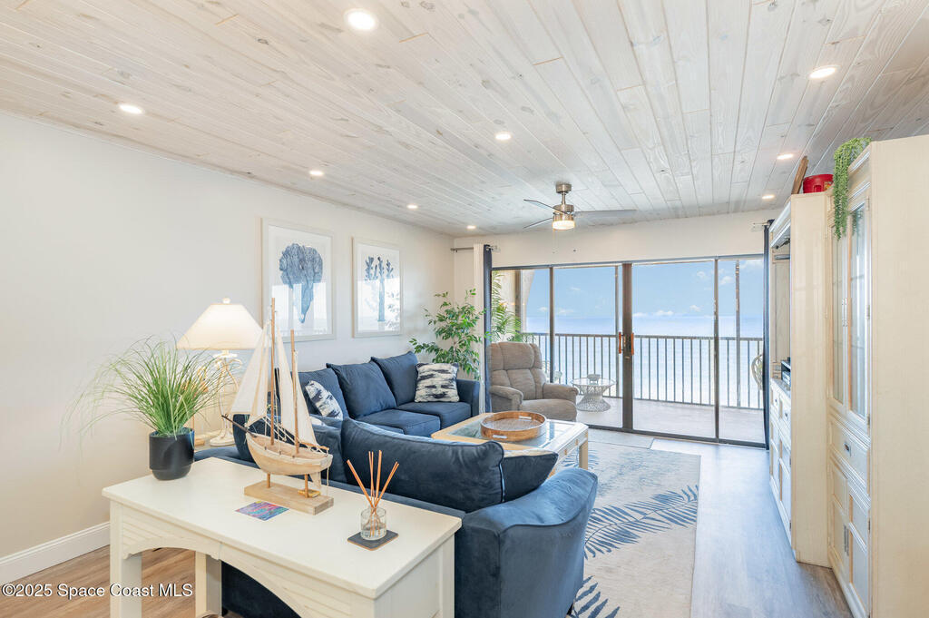 Imagine yourself in this stunning top-floor oceanfront condo! From the 9th floor, enjoy endless, breathtaking ocean views that stretch for miles. This beautifully updated 3BR/2.5BA SE corner unit is coastal-inspired, featuring luxury vinyl flooring, plantation shutters, and a designer kitchen with white custom cabinetry, granite countertops, and stainless steel appliances. Relax with balcony access from both the family room and primary suite, in-unit laundry, ceiling fans in every room (even the balcony!), and updated sliders. Electric Roll-down hurricane shutters provide peace of mind. At The Buccaneer Beach Club, enjoy resort-style amenities--heated pool, tennis/pickleball courts, underground garage parking, and private beach access to a quiet stretch of sand. Perfectly located near Orlando, Cape Canaveral, shops, and restaurants--where every day feels like a vacation!