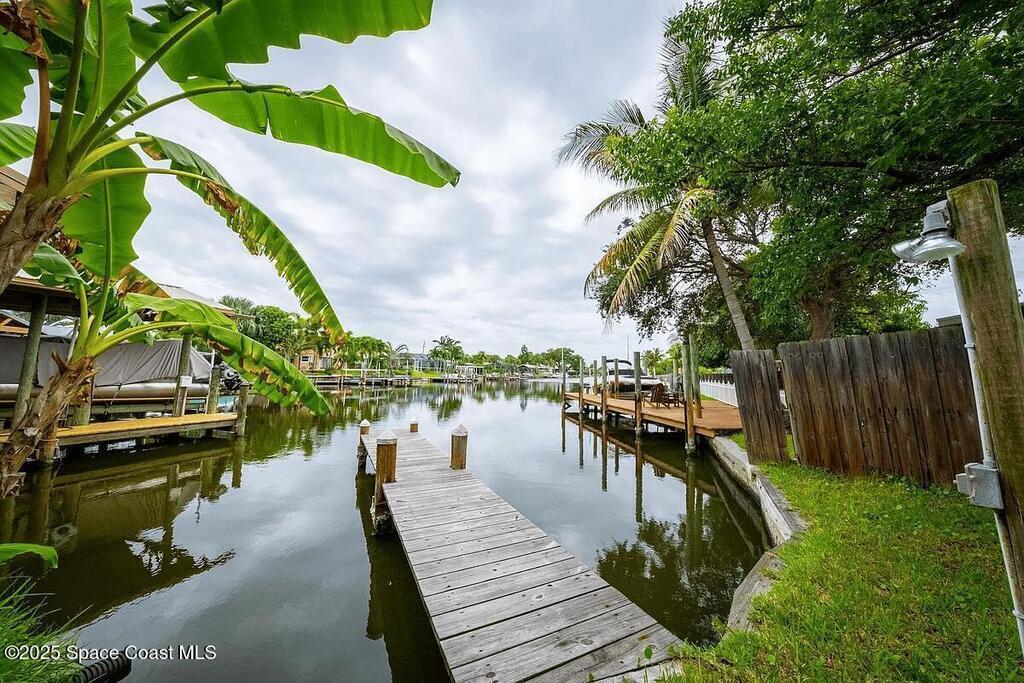 4BR 2BA Waterfront home with dock (pier). Attached 1 car garage. New Hurricaneimpact-rated energy-efficient windows, doorwall, and garage door w/smart opener.Terrazzo floors throughout. Updated kitchen w/ dishwasher and glass-top range w/ self-cleaning oven. Primary BR en suite w/ shower; skylight; tub/shower in shared bath.Fenced patio area for dog run, BBQ or outdoor storage, Waterfront with DOCK, with direct access to ICW. Trash Pickup and Basic lawn care INCLUDED. Available January 2026. No cats, dogs considered. Renter's Insurance Required.