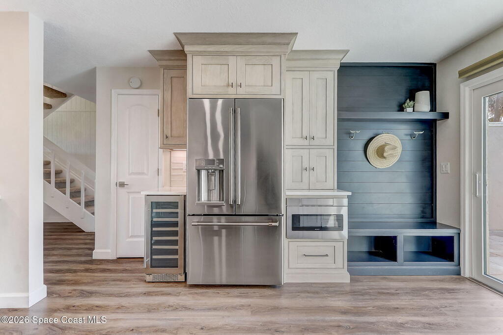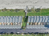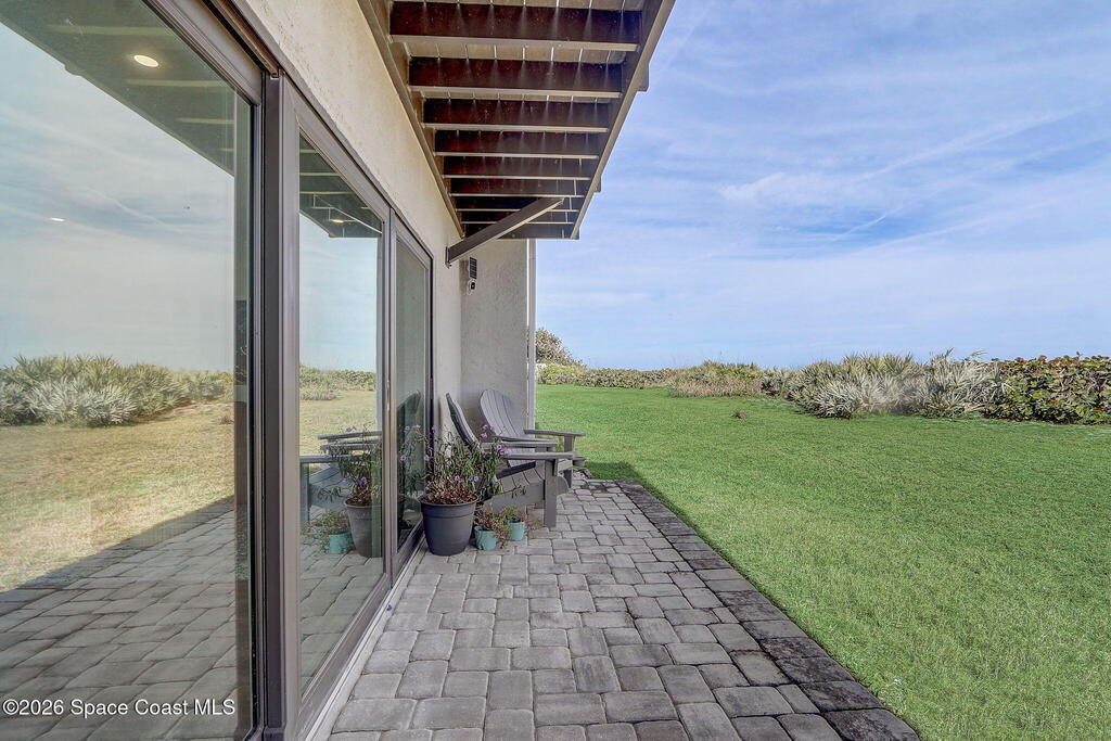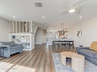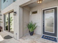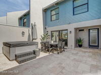 Luxury end-unit living just steps from the beach, this exceptional three-story residence delivers the coastal lifestyle you've been waiting for with high-end finishes, open spaces, and panoramic ocean views. The main living area is located on the first level and features a gourmet custom kitchen with quartz countertops, extended premium cabinetry, a wine cooler, luxury vinyl plank flooring, and one of only two units in the community offering natural gas for cooking and an instant water heater. The living space opens to a large rear patio overlooking the ocean, perfect for indoor-outdoor living and entertaining. The second level hosts the primary suite with a private oceanside balcony, along with two well-appointed guest bedrooms, while the third level offers a versatile fourth bedroom ideal for a home office, guest suite, or flex space. As a desirable end unit, the home welcomes you through a private courtyard entrance where you'll find a heated spa and patio area,